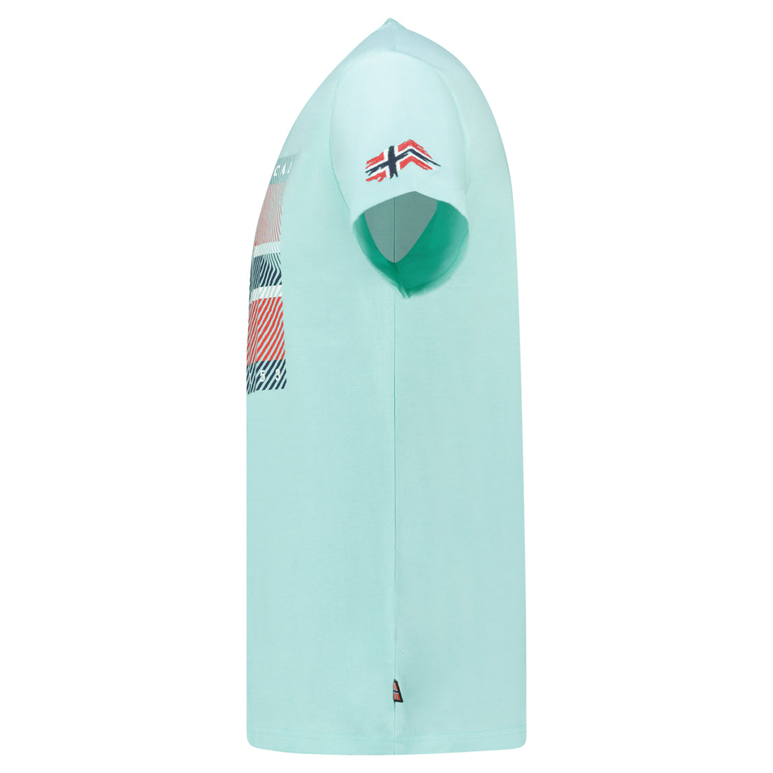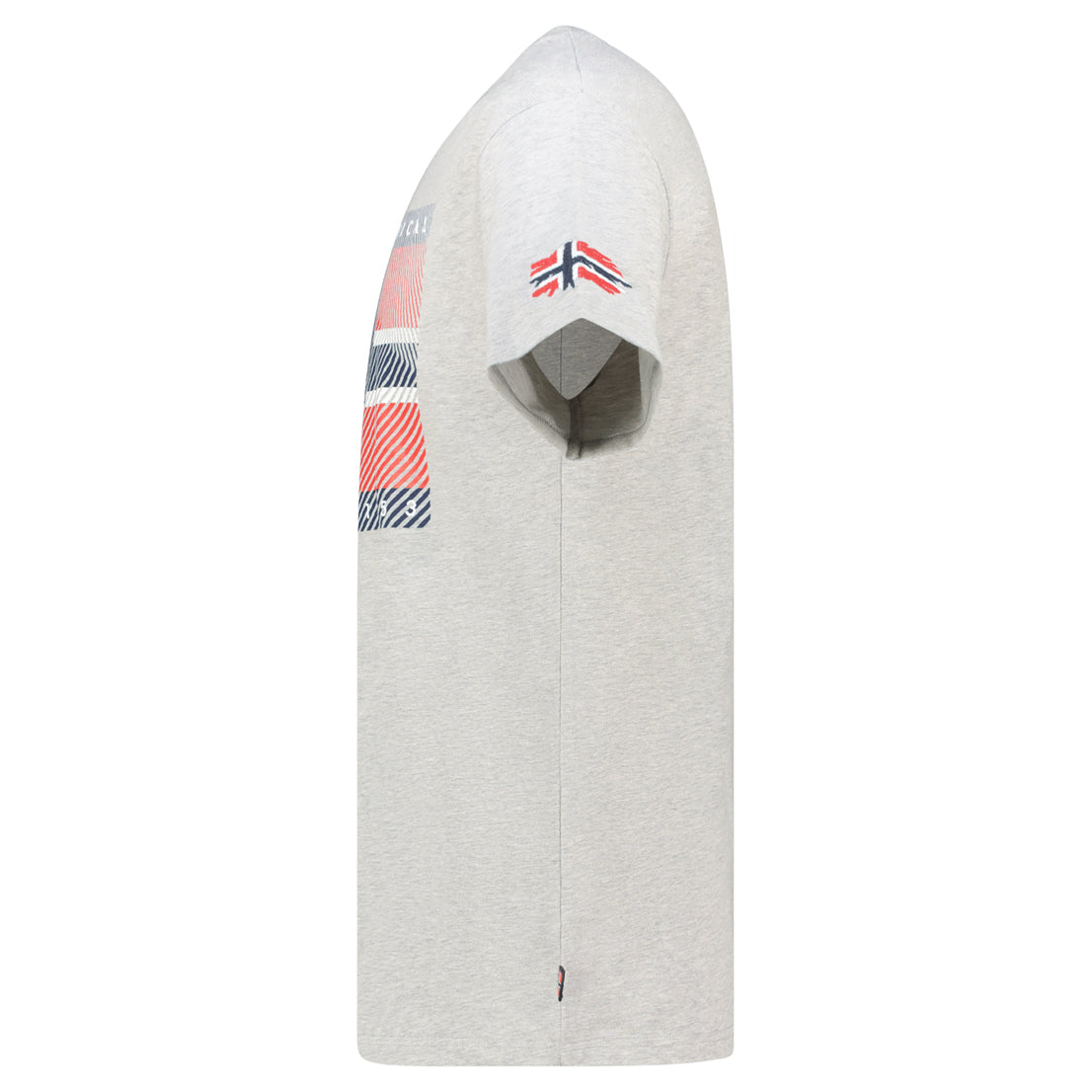 Le tee-shirt "Junter Men" de Geographical Norway est un modèle à manches courtes au style moderne et épuré. Doté d’un col rond classique, il assure un confort optimal grâce à sa matière 100 % coton. Son inscription à l’avant apporte une touche graphique distinctive, tandis que le drapeau sur la manche souligne l’identité authentique de la marque. Léger et agréable à porter, il est idéal pour un look casual au quotidien.