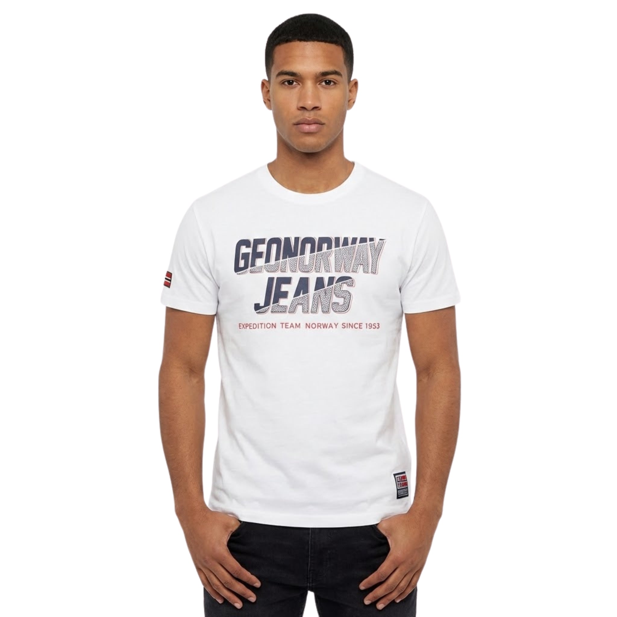 Découvrez le t-shirt "Jasper" pour homme de Geographical Norway, un choix idéal pour ajouter une touche de style à votre tenue décontractée. Ce t-shirt est doté de manches courtes, d'un col rond et de drapeaux et impressions distinctives à l'avant et sur le côté, offrant ainsi une apparence moderne et audacieuse. Fabriqué avec des matériaux de haute qualité, ce t-shirt garantit un confort optimal tout au long de la journée. Que ce soit pour une sortie entre amis ou une journée de détente, le t-shirt "Jasper" de Geographical Norway est un incontournable dans votre garde-robe.