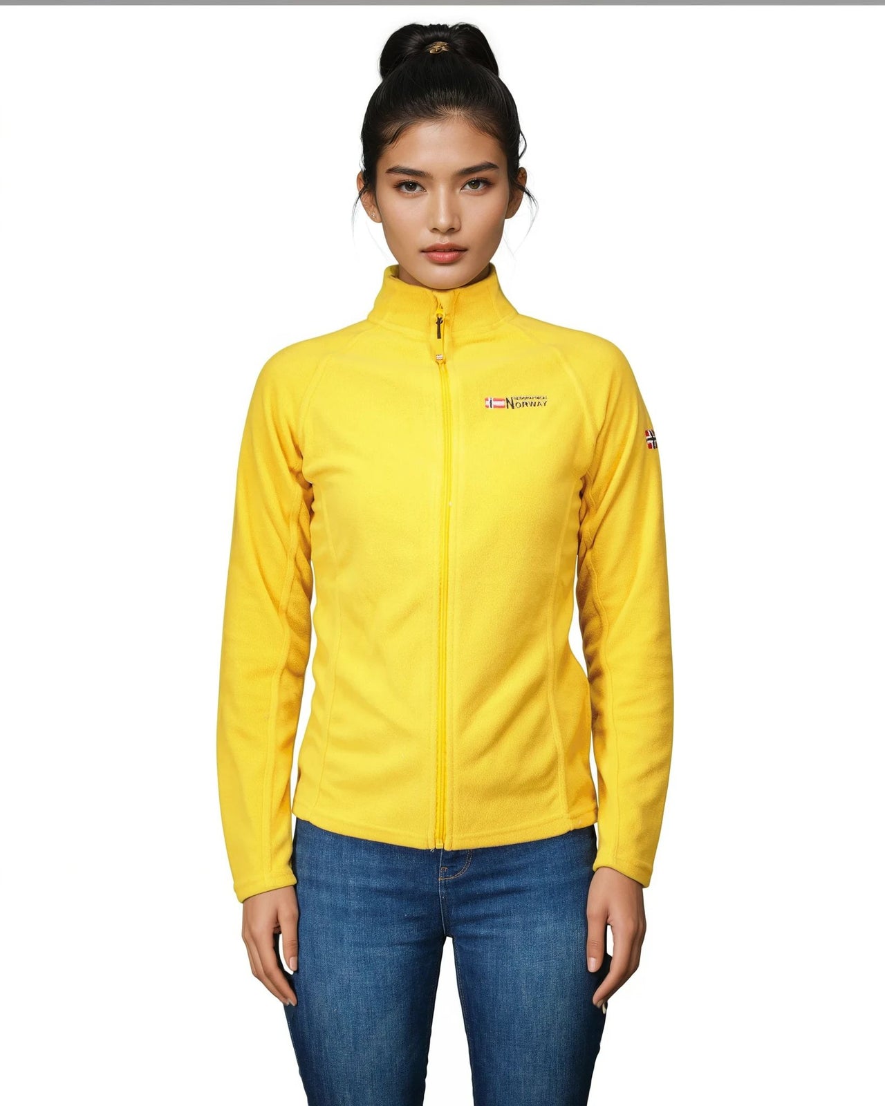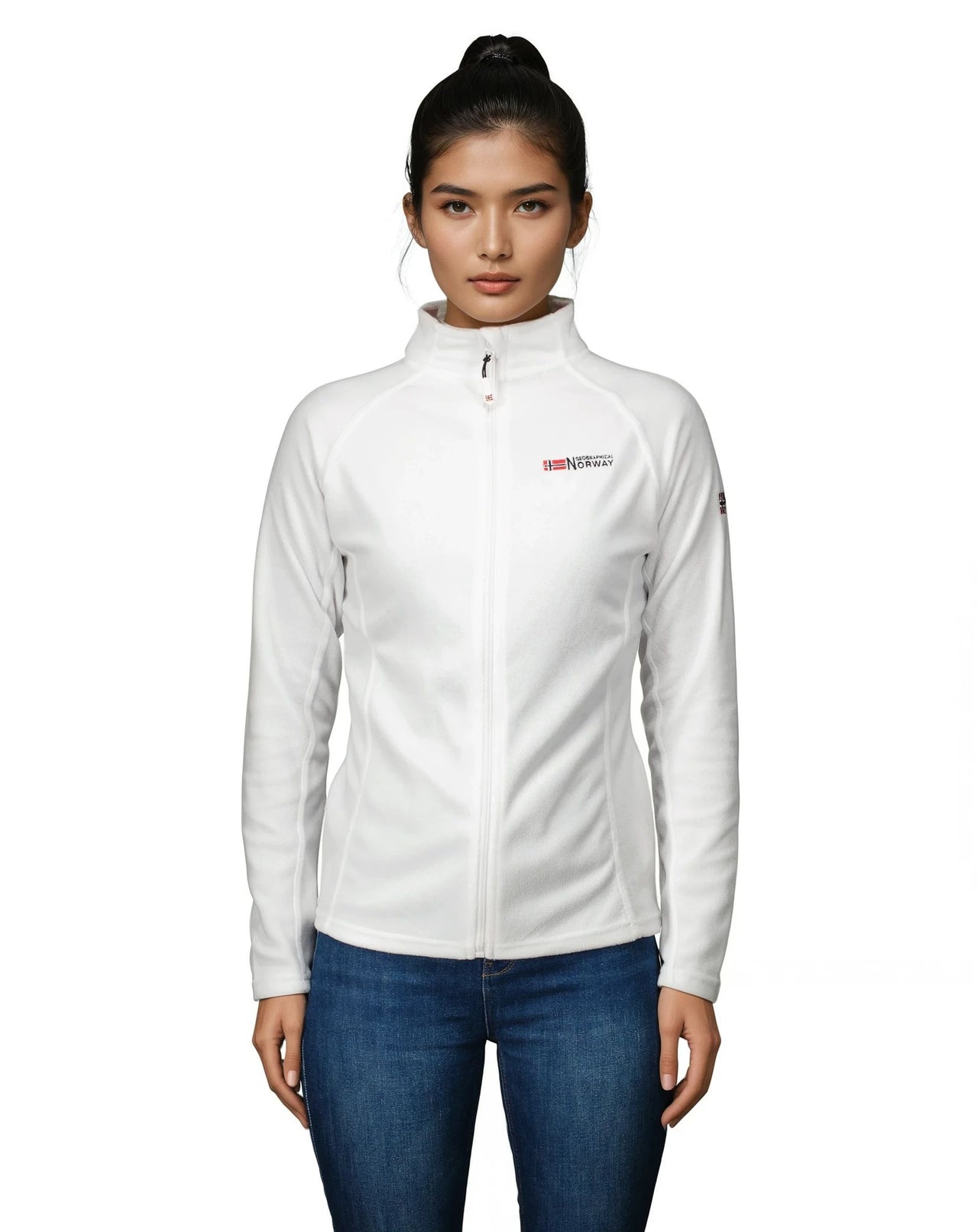 Découvrez la micro-polaire femme "Tug FZ" de Geographical Norway. Cette polaire élégante offre des manches raglantes, une broderie sur la poitrine, une ouverture zippée sur le milieu devant et est vendue pliée et emballée autour d'un papier décoratif.