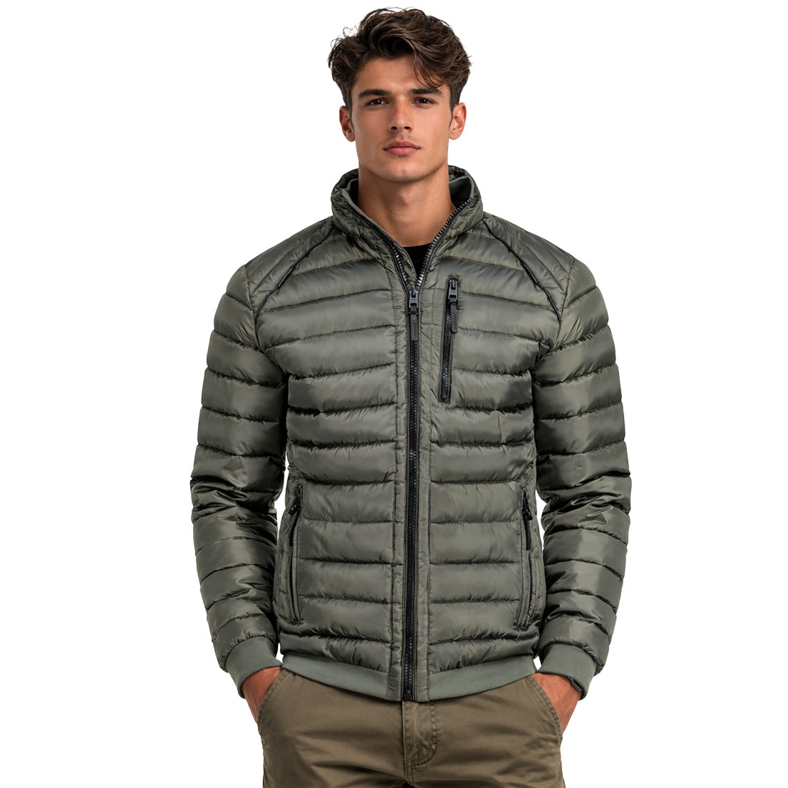 Le blouson "Alonzo Men" de Geographical Norway est un modèle matelassé fin, confortable et polyvalent, parfait pour la mi-saison. Son col montant offre une protection supplémentaire contre le vent, tandis que sa fermeture zippée centrale assure praticité et modernité. Doté de plusieurs poches latérales fonctionnelles et d’un badge distinctif sur la manche, il combine style urbain et confort au quotidien.