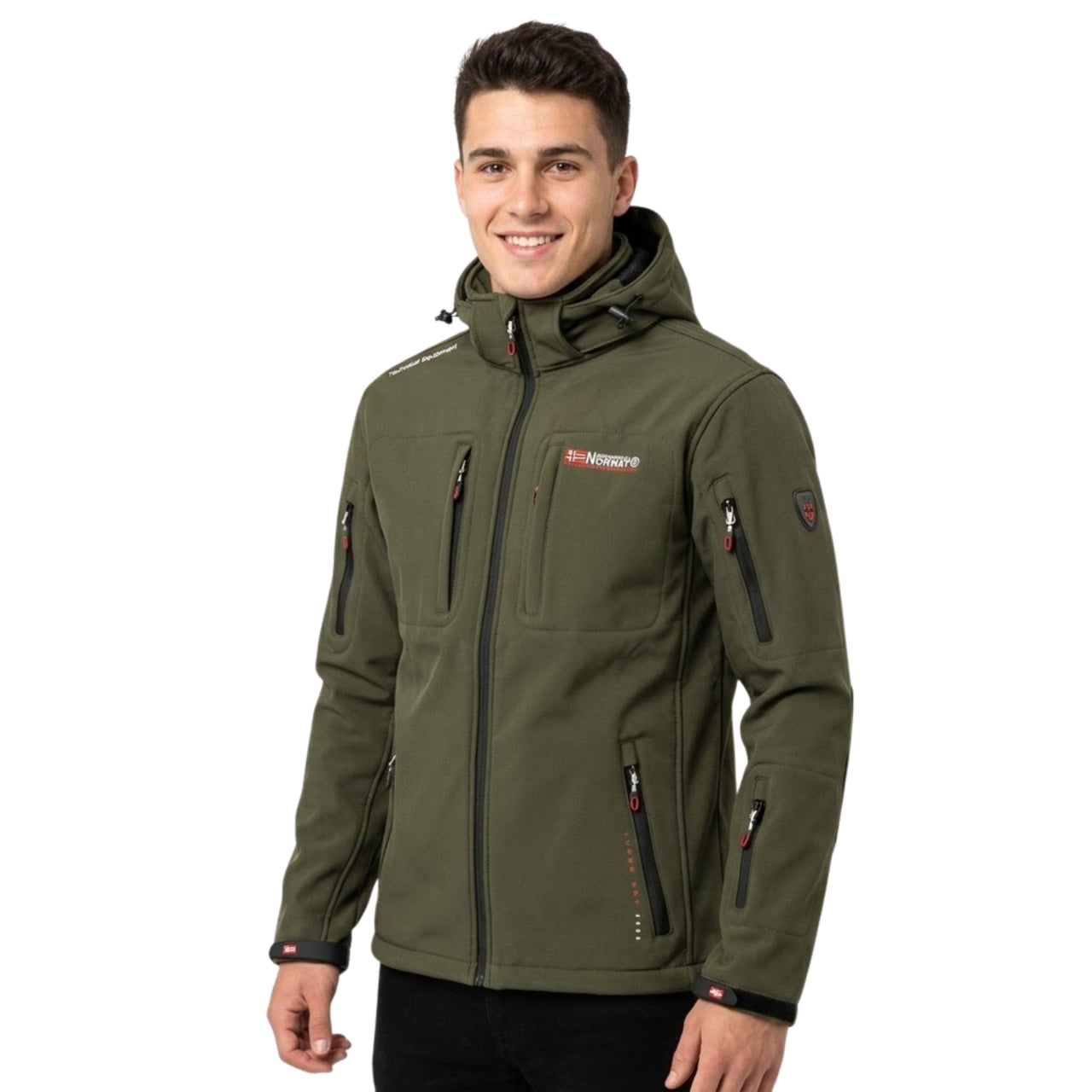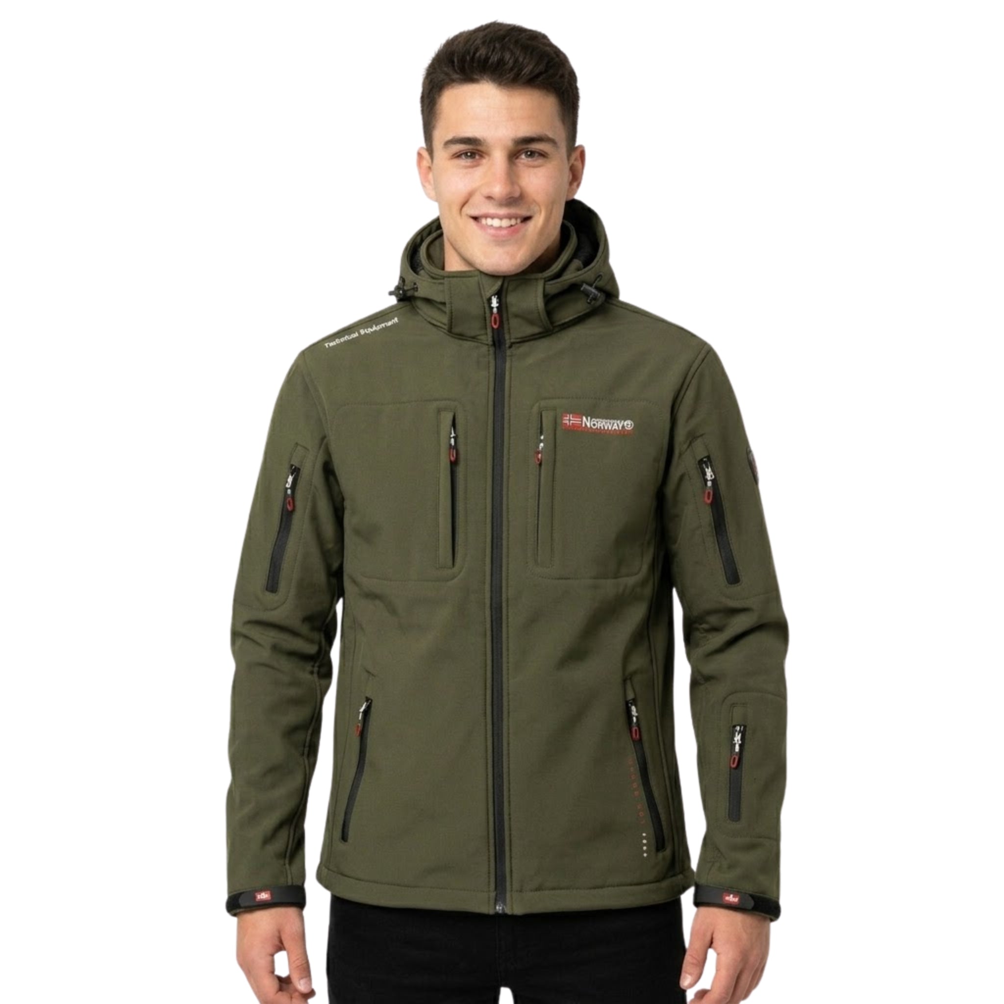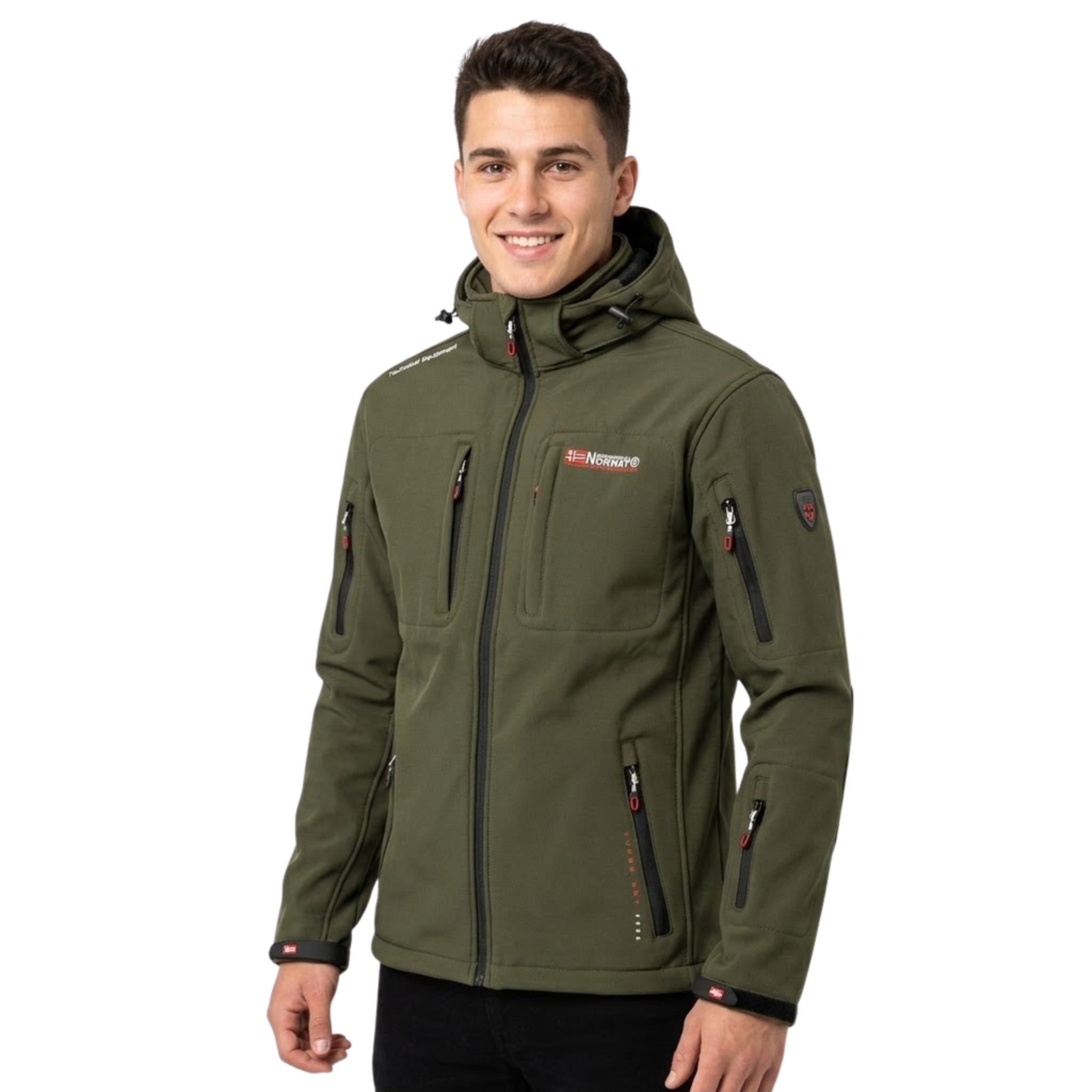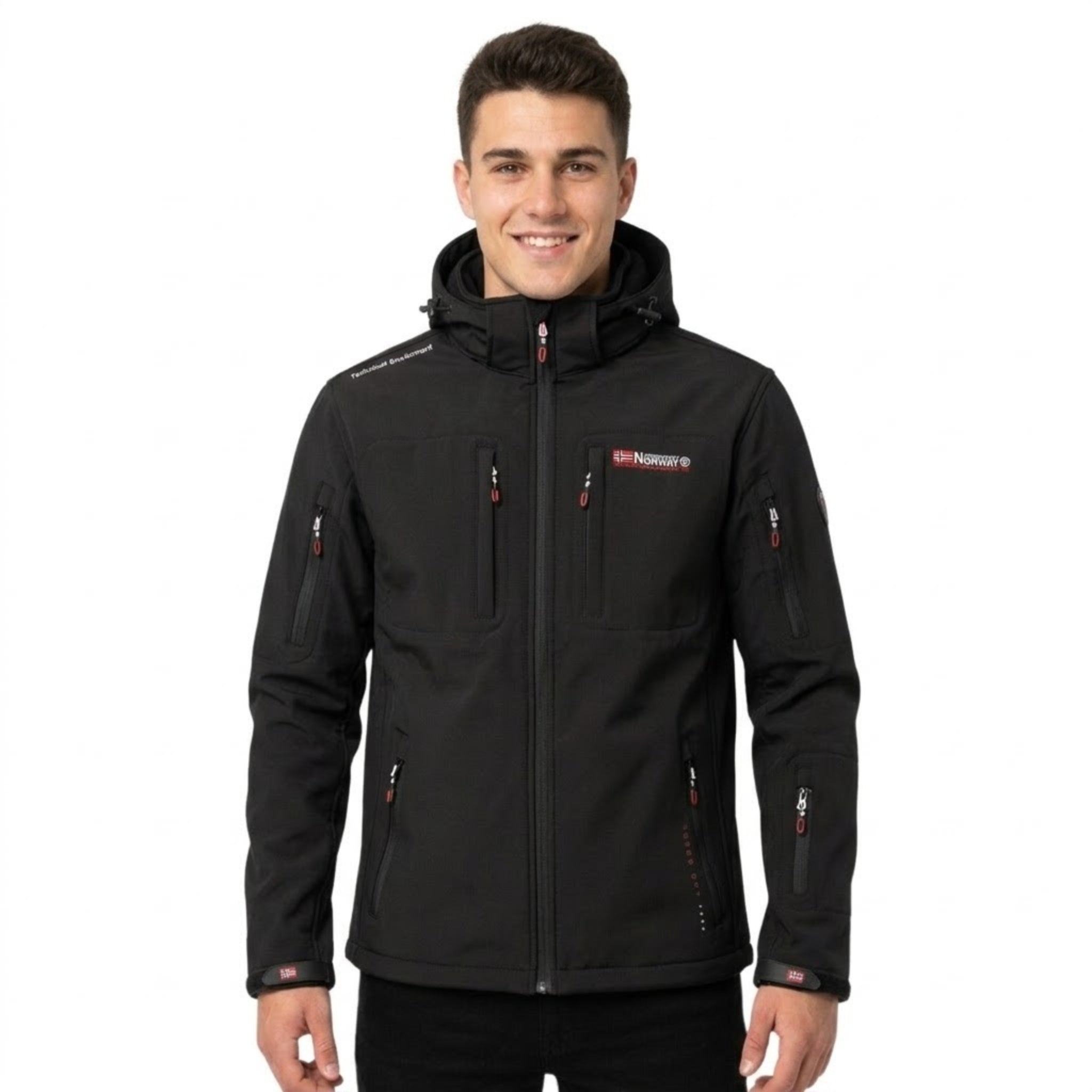 Découvrez le blouson softshell homme "Tunar" de Geographical Norway. Ce blouson offre des liens de resserrage à la capuche, des poches zippées sur le devant et les manches, un lien de resserrage aux poignets, un badge en PVC sur la manche, des impressions et des broderies sur le devant.