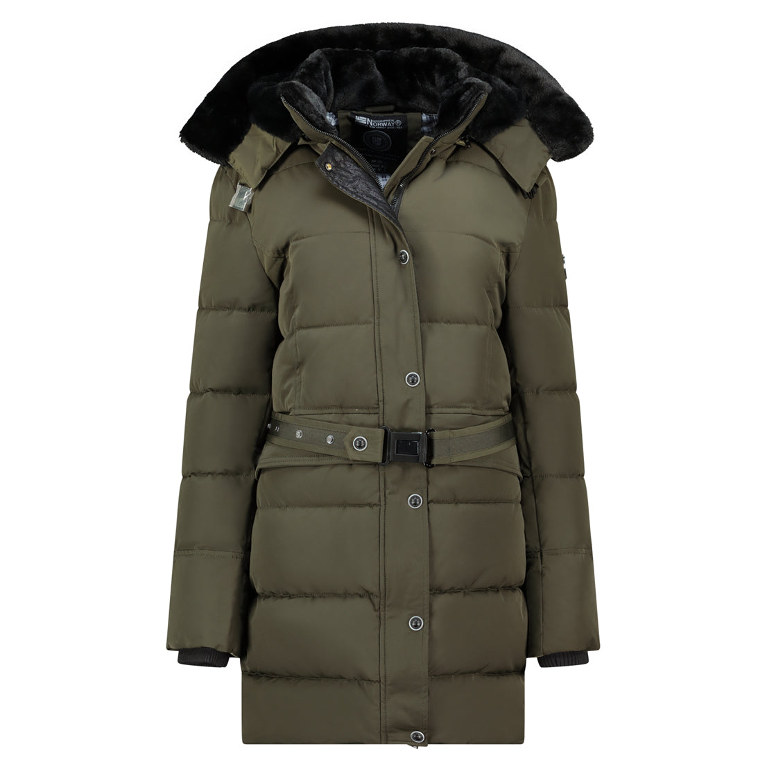 Découvrez la parka "BETTINO" de Geographical Norway pour femmes. Cette parka est dotée d'une ceinture à la taille, de deux poches sur les côtés et d'une capuche amovible avec fourrure synthétique pour un style élégant et polyvalent..