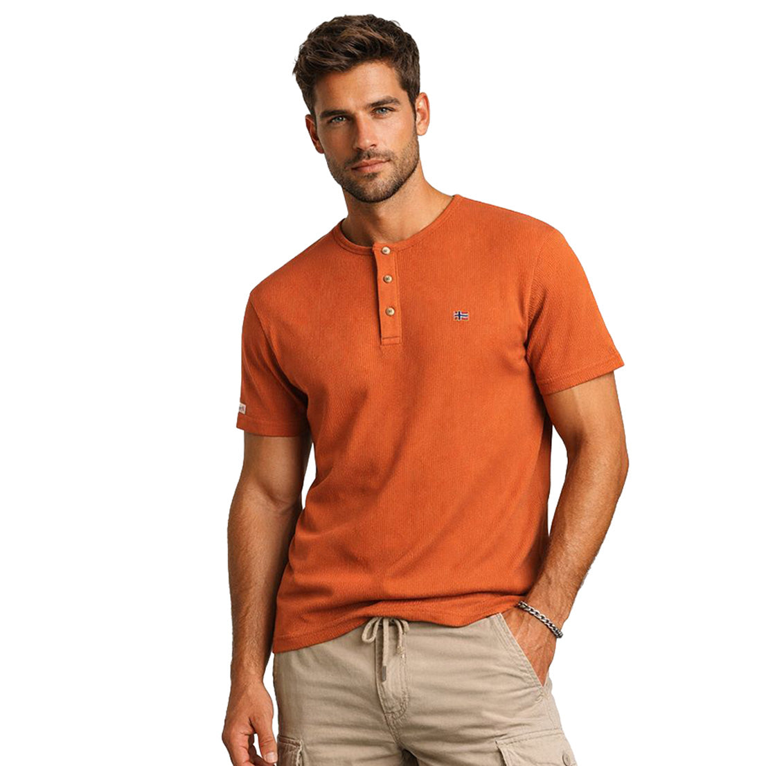 Le tee-shirt "Jwaffle Men" de Geographical Norway se distingue par son tissu nid d’abeille qui apporte texture et respirabilité. Léger et confortable, il est doté d’une encolure ronde avec patte de boutonnage à trois boutons pour un style casual travaillé. Le drapeau sur la poitrine ajoute une touche signature discrète et moderne. Idéal pour un look décontracté et soigné en toute saison.