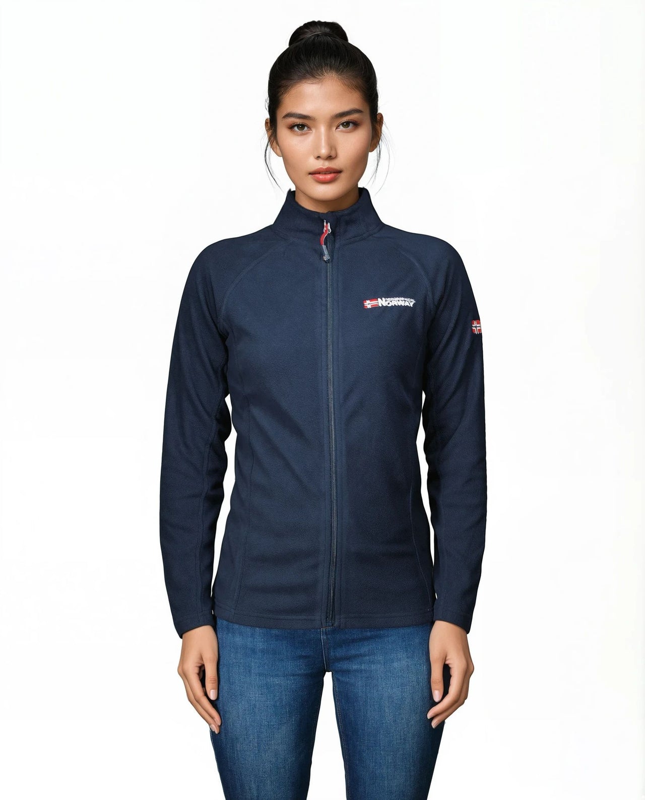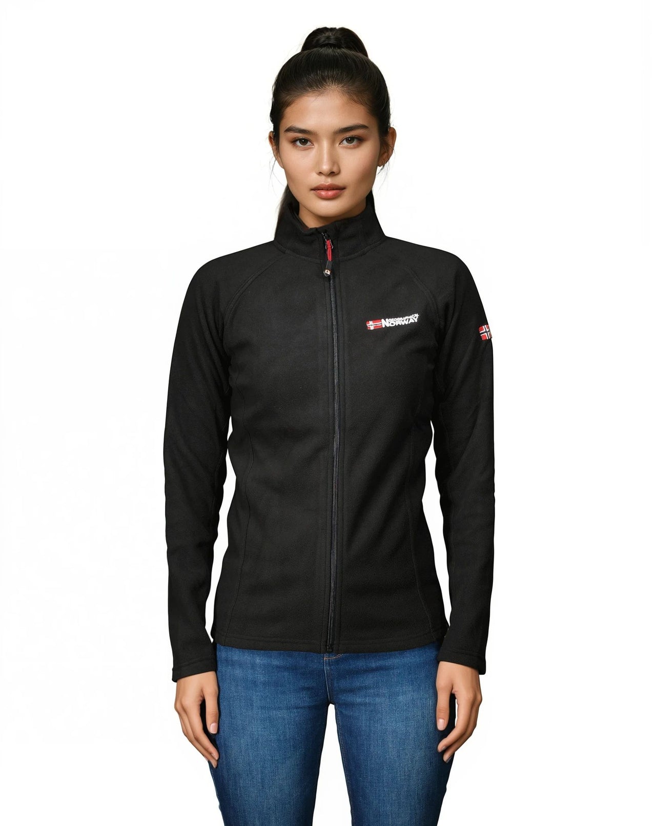 Entdecken Sie das Damen-Microfleece "Tug FZ" von Geographical Norway. Dieses elegante Fleece bietet Raglanärmel, eine Stickerei auf der Brust, eine Reißverschlussöffnung in der vorderen Mitte und wird gefaltet und um ein dekoratives Papier gewickelt verkauft.