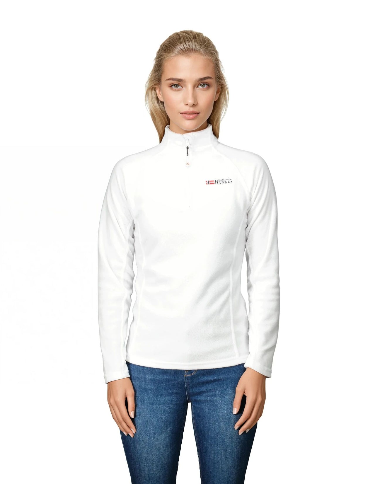 Entdecken Sie das Damen-Microfleece "Tug" von Geographical Norway. Dieses stilvolle Fleece bietet Raglanärmel, eine Stickerei auf der Brust, eine Reißverschlussöffnung in der vorderen Mitte und wird gefaltet und um ein dekoratives Papier gewickelt verkauft.