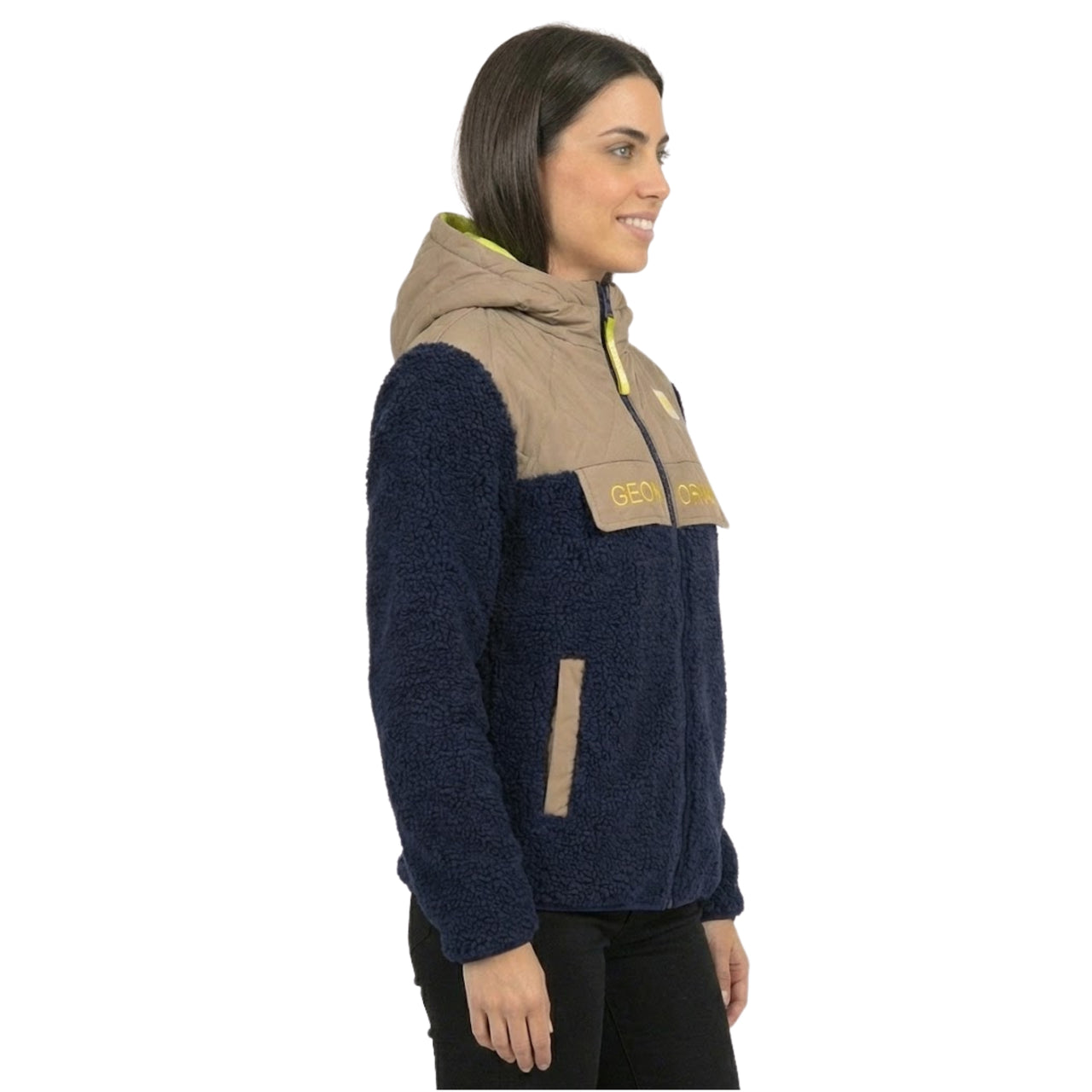 Das Fleece "Techic" für Damen von Geographical Norway vereint Wärme, Komfort und modernen Stil. Es wurde aus zweifarbigem Bi-Material gefertigt und zeichnet sich durch sein trendiges und funktionelles Design aus. Die feste Kapuze, der eingespritzte Reißverschluss und die praktischen Seitentaschen machen sie zu einem idealen Verbündeten für die Zwischensaison wie auch für kühle Tage. Ein unverzichtbares Teil, das sowohl bequem als auch elegant ist, für einen sportlichen und femininen Look.