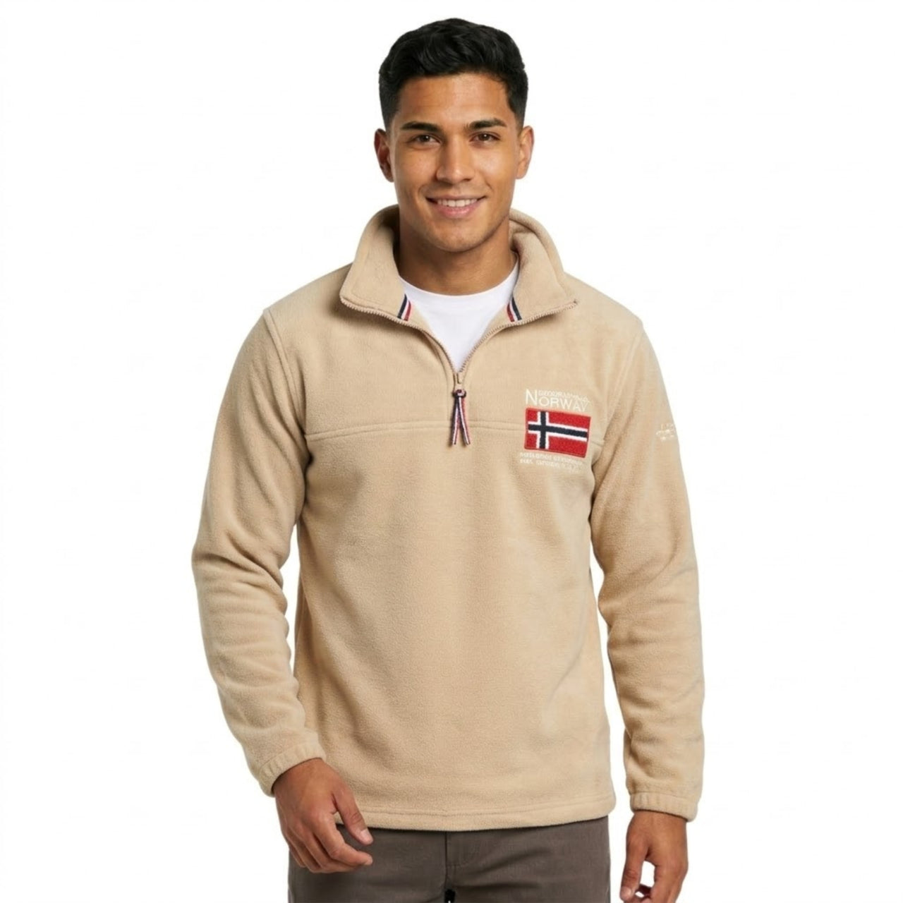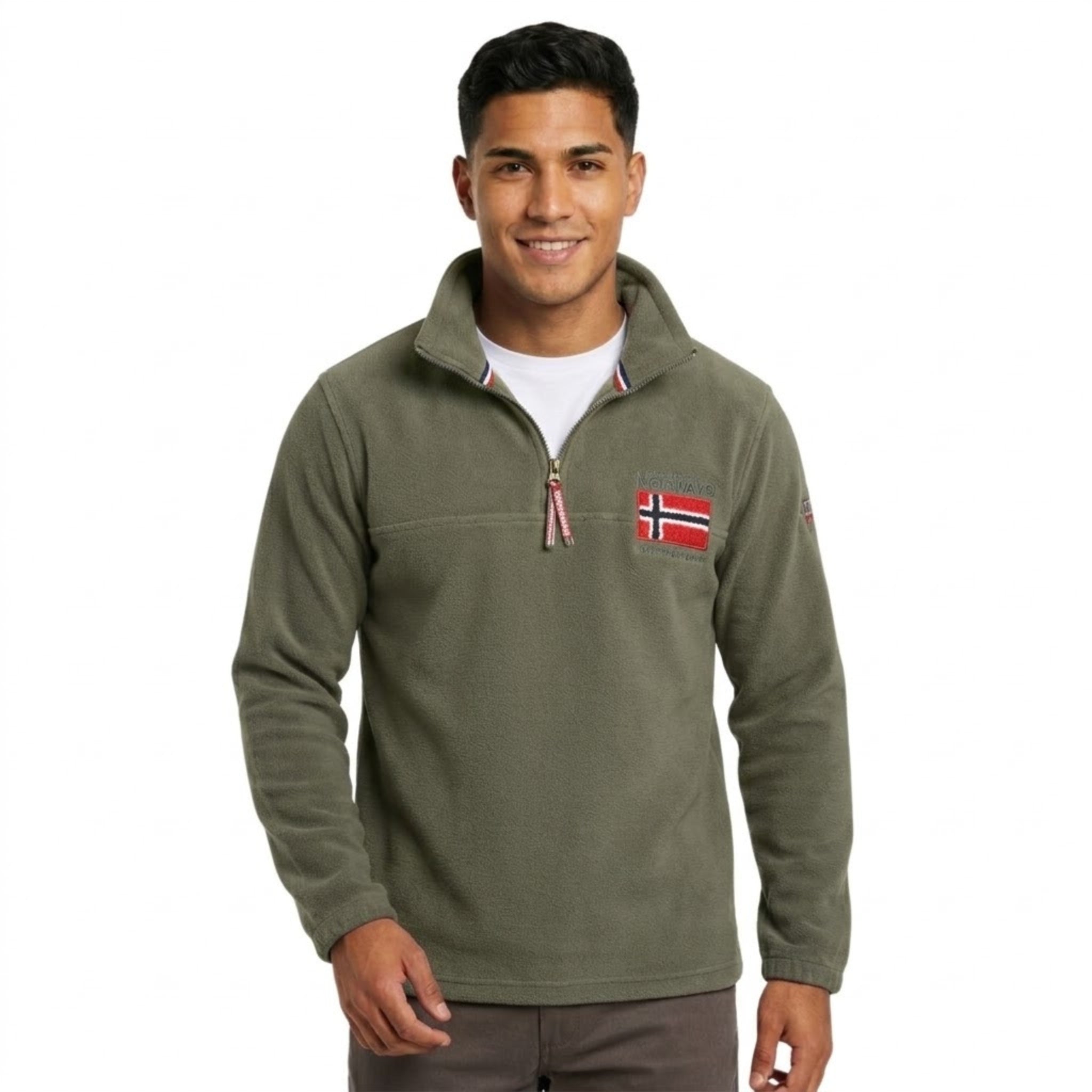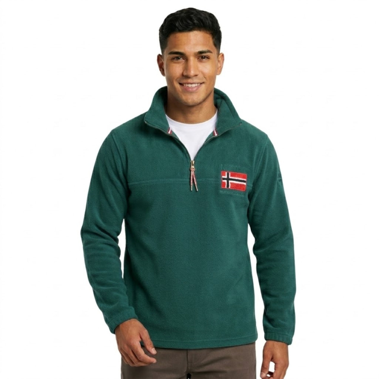 Dieses Fleece für Herren von TEQUATEUR hat einen geraden Schnitt und einen Stehkragen mit Reißverschluss, der ihm einen Hauch von Eleganz verleiht. Es wurde entwickelt, um Ihnen täglich Wärme und Komfort zu bieten, verfügt über Seitentaschen und ist mit einer aufgedruckten Flagge auf der Brust verziert.