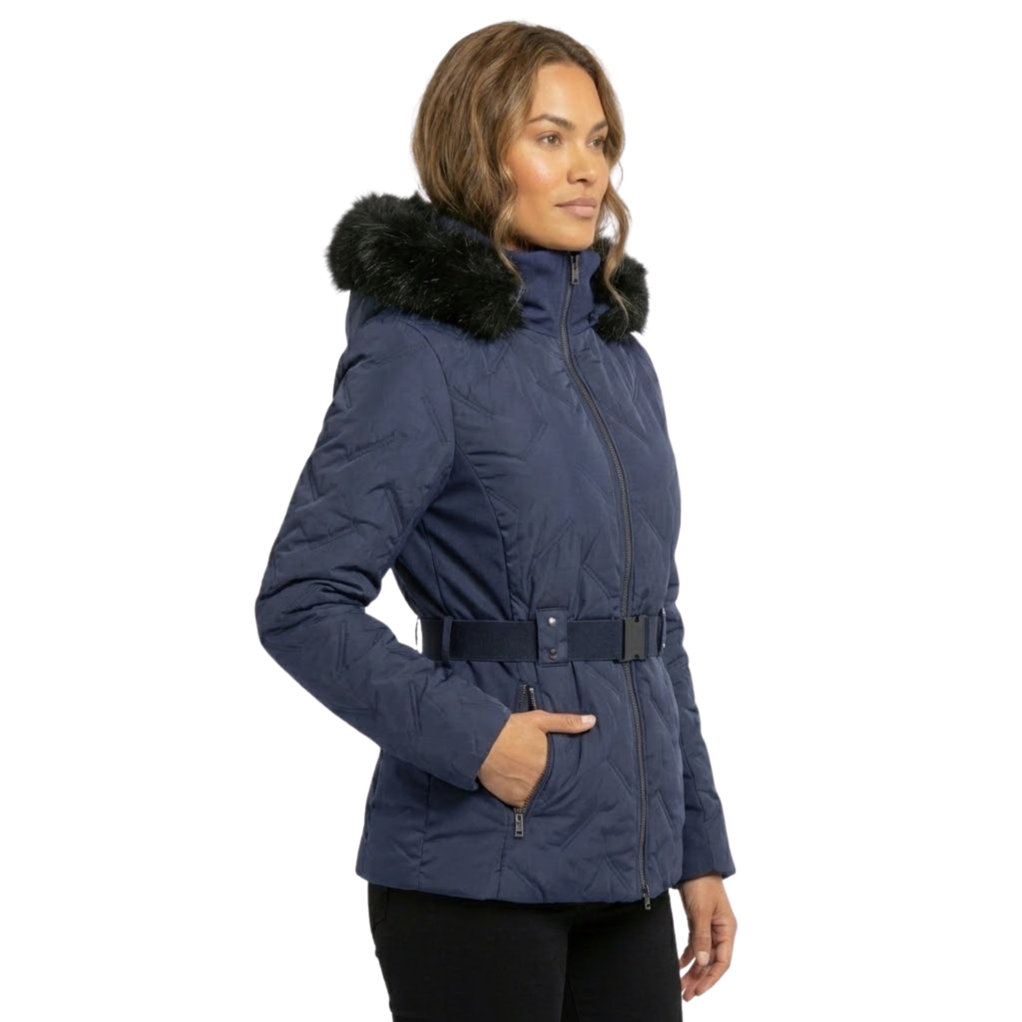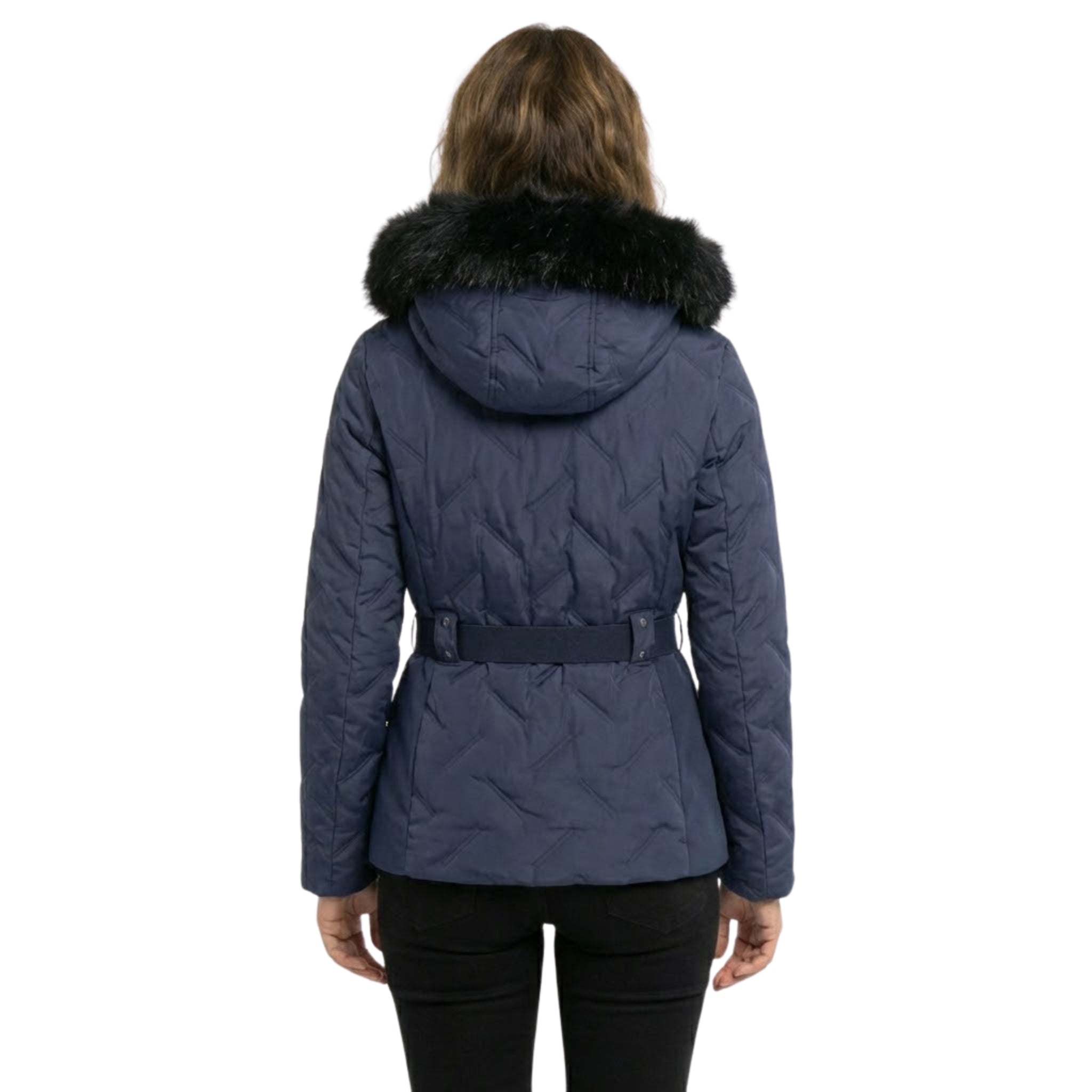 Damenparka mit Kapuze und elegantem Kunstpelzbesatz.