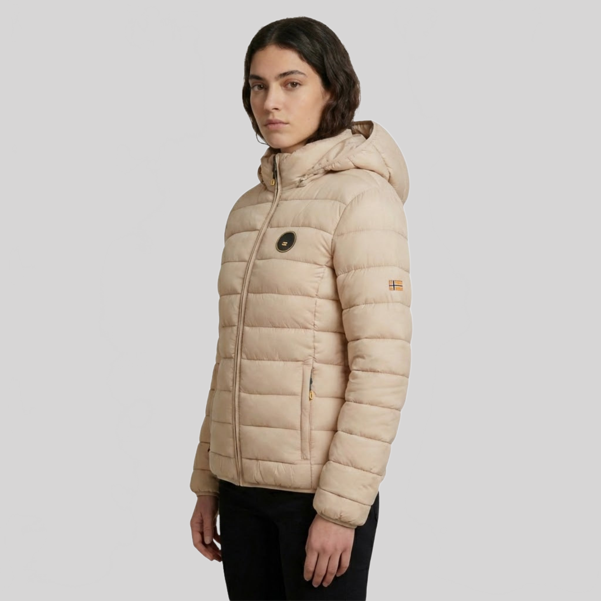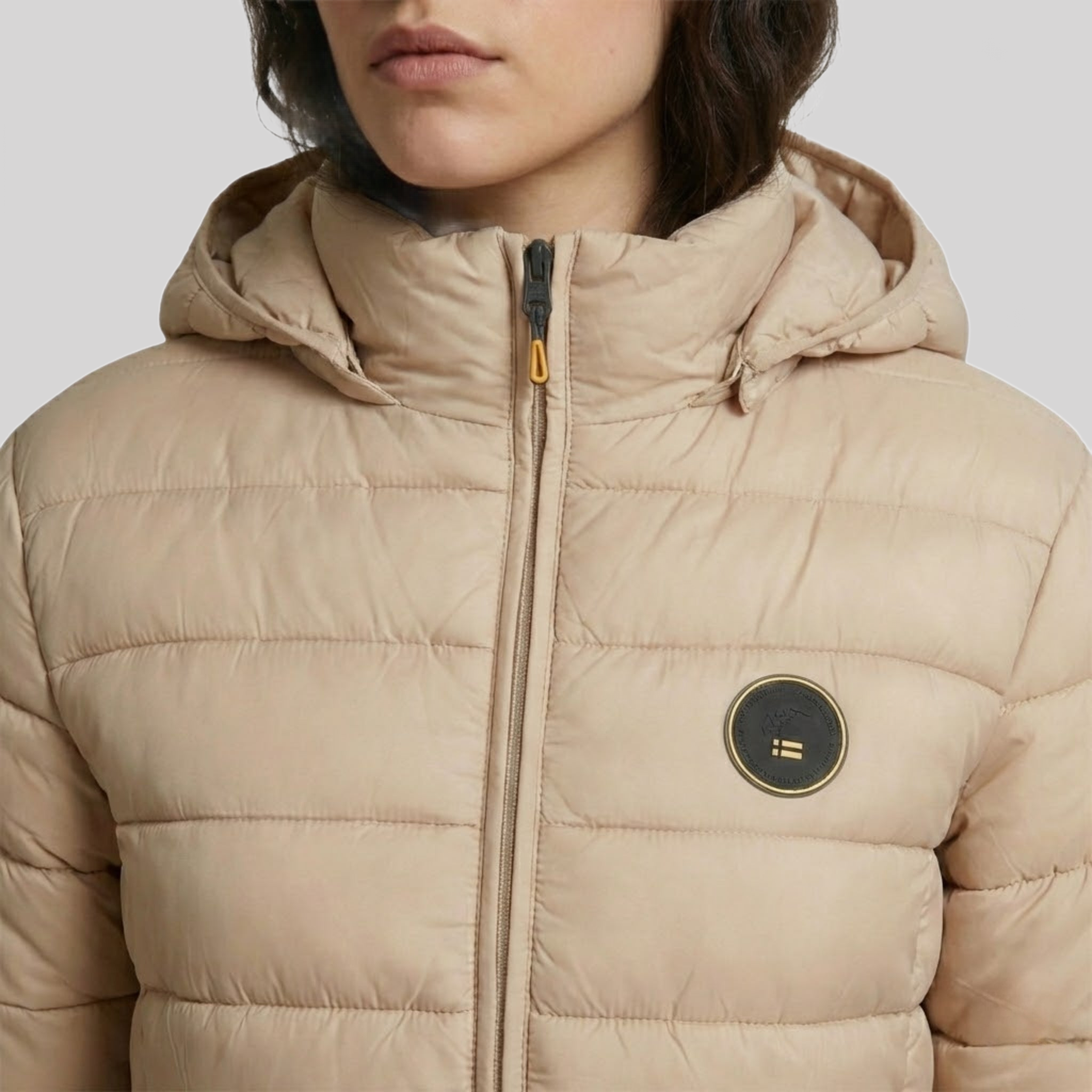 Verlieben Sie sich in die Jacke "Atikamap Hood" für Damen von Geographical Norway, eine gesteppte Version mit Kapuze, die Stil und Komfort vereint. Die leichte und funktionelle Jacke verfügt über einen zentralen Reißverschluss, zwei praktische Seitentaschen und markante Abzeichen am Ärmel und auf der Brust. Diese vielseitige Jacke eignet sich perfekt für die Übergangszeit und lässt sich problemlos an alle Ihre Alltagsoutfits anpassen.