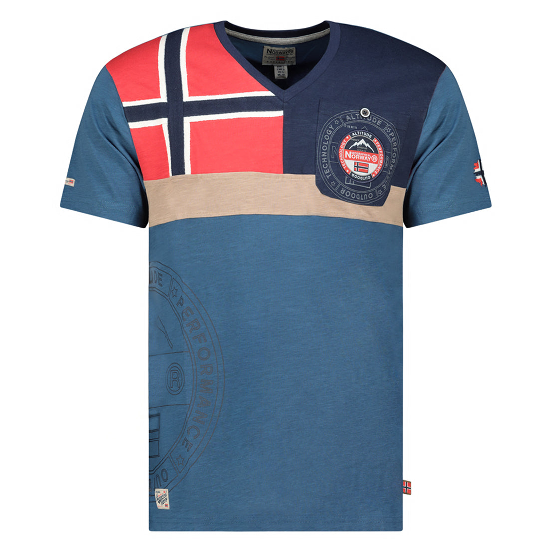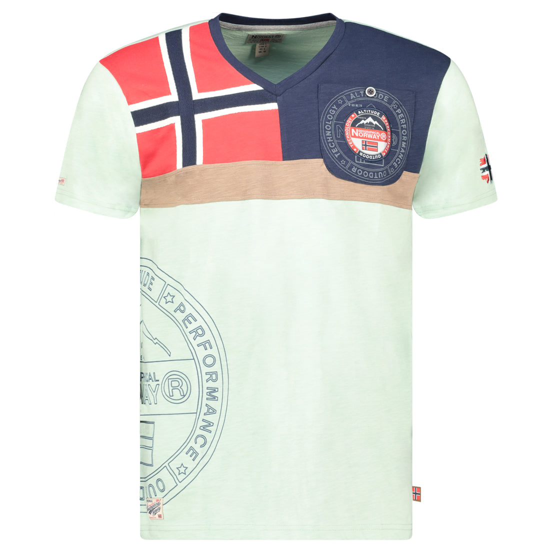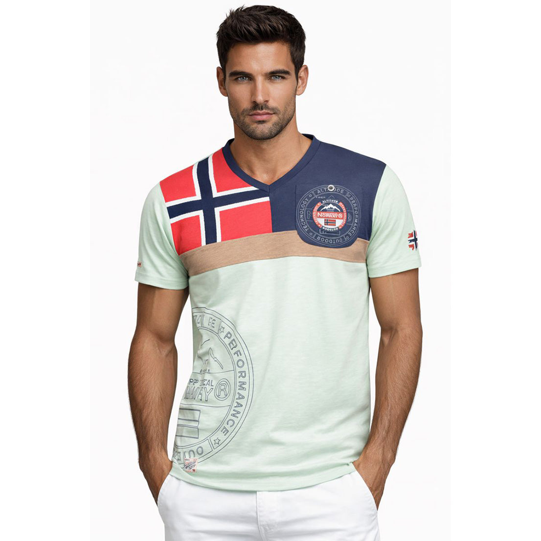 Das T-Shirt „J-Flag Men” von Geographical Norway ein modernes und elegantes Modell mit V-Ausschnitt, ideal für einen lässigen und gepflegten Look. Es ist leicht und bequem und aus Baumwolle gefertigt, sodass es den ganzen Tag über angenehm zu tragen ist. Die Brusttasche sorgt für einen praktischen und unverwechselbaren Touch und verleiht diesem unverzichtbaren Kleidungsstück für Herren zusätzlichen Charakter.