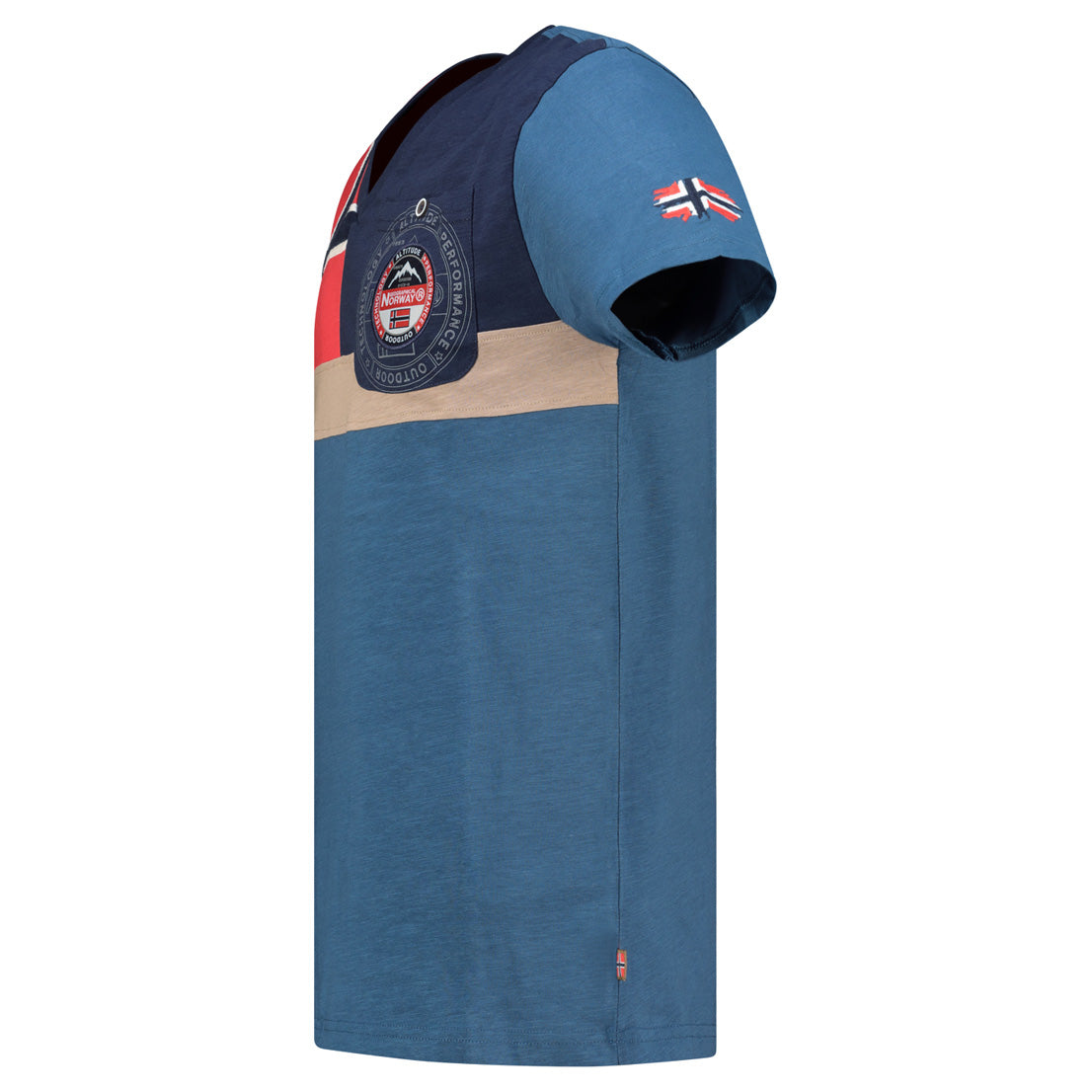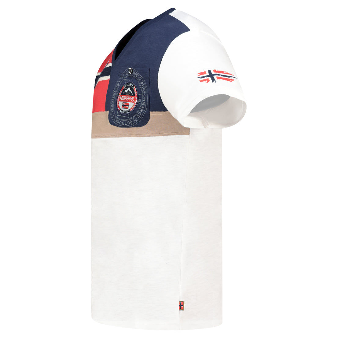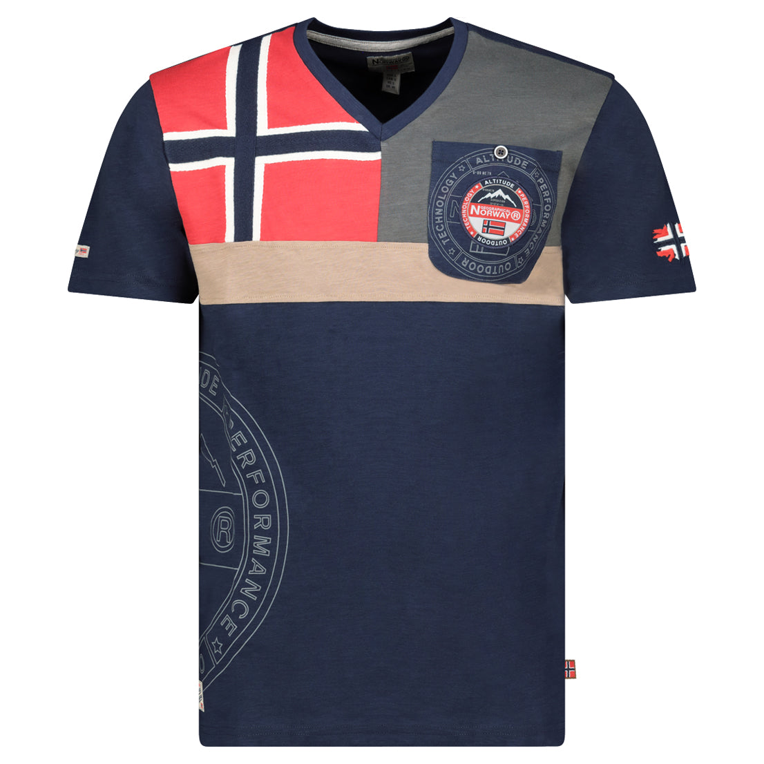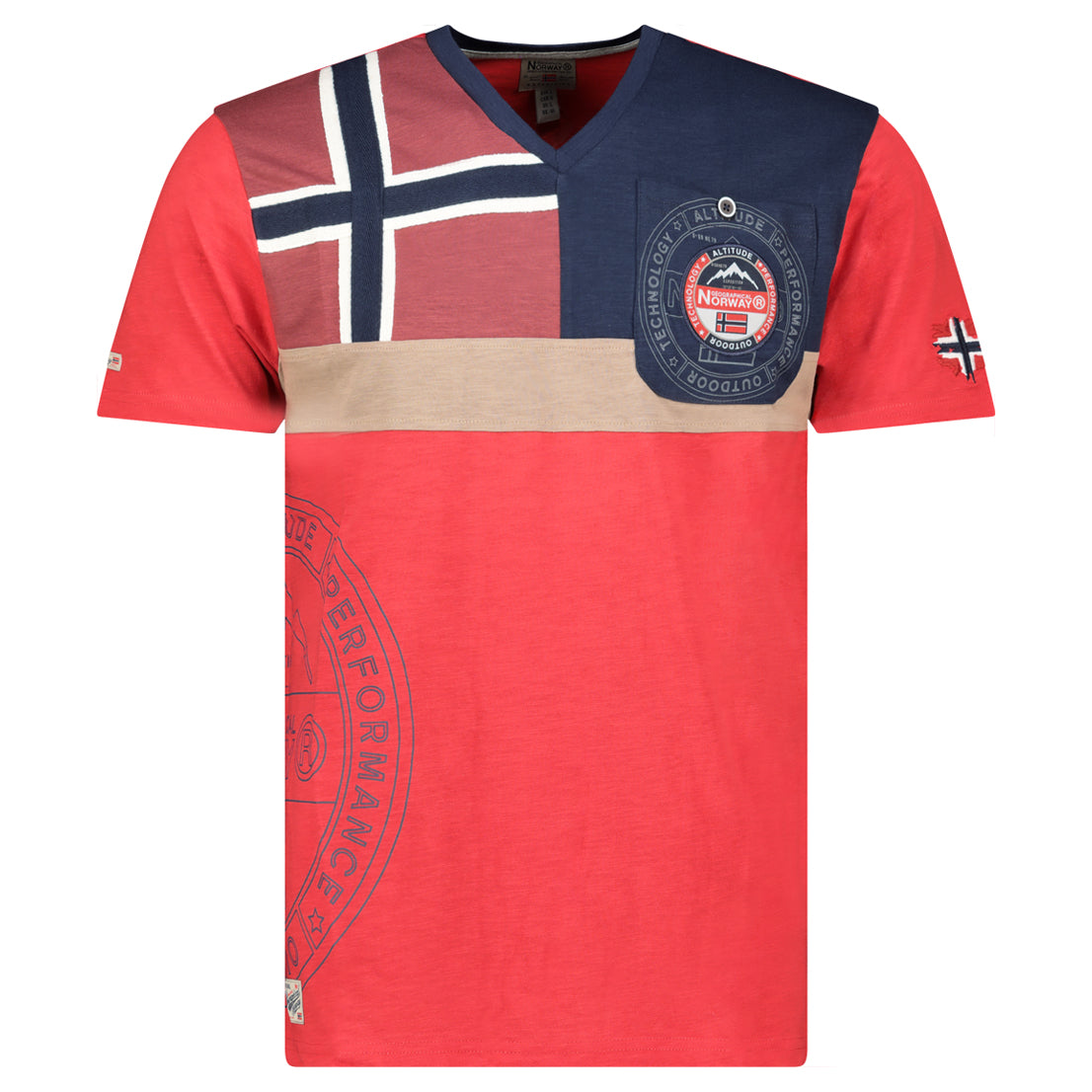 Das T-Shirt „J-Flag Men” von Geographical Norway ein modernes und elegantes Modell mit V-Ausschnitt, ideal für einen lässigen und gepflegten Look. Es ist leicht und bequem und aus Baumwolle gefertigt, sodass es den ganzen Tag über angenehm zu tragen ist. Die Brusttasche sorgt für einen praktischen und unverwechselbaren Touch und verleiht diesem unverzichtbaren Kleidungsstück für Herren zusätzlichen Charakter.