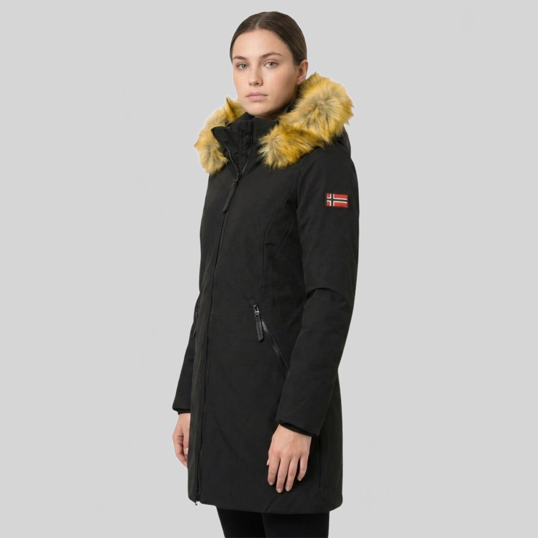 Entdecken Sie den Parka "ADELAIDE" für Damen von Geographical Norway, ein elegantes Modell mit Kapuze, Pelz und praktischen Seitentaschen. Dieser Parka hat außerdem eine markante Flagge auf dem Ärmel, die Ihrem Outfit eine stilvolle Note verleiht. Dieser Parka wurde sorgfältig und qualitätsbewusst hergestellt und vereint Komfort, Wärme und Ästhetik. Der Parka "ADELAIDE" von Geographical Norway ist perfekt, um kalten Temperaturen zu trotzen und dabei modisch zu bleiben. Er ist die perfekte Wahl für Frauen, die Wert auf Stil und Komfort legen. Zögern Sie nicht länger, greifen Sie zu diesem Parka und sorgen Sie bei Ihren Ausflügen im Winter für Aufsehen!