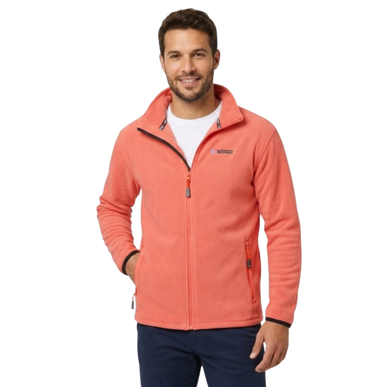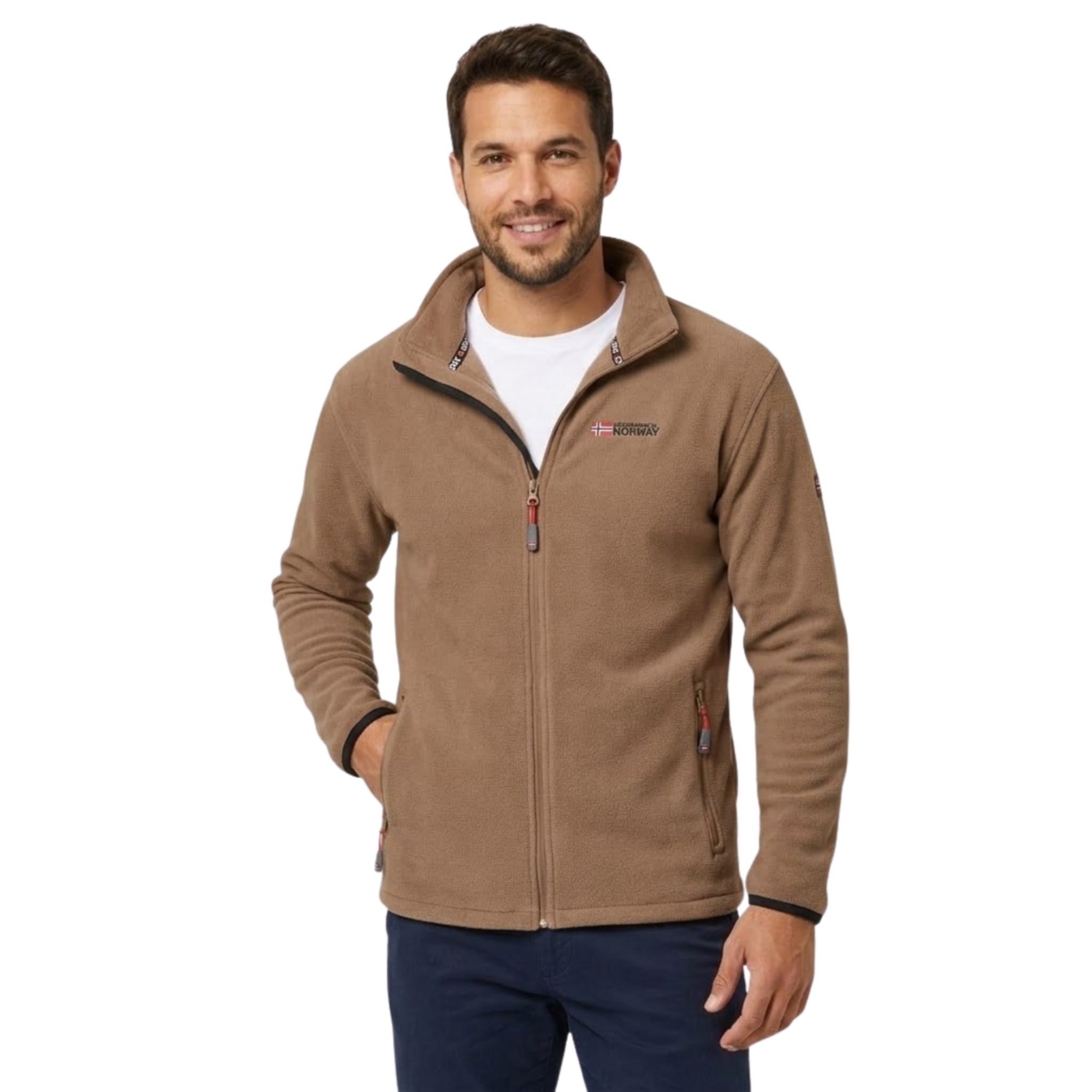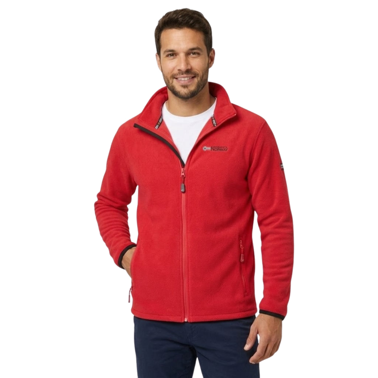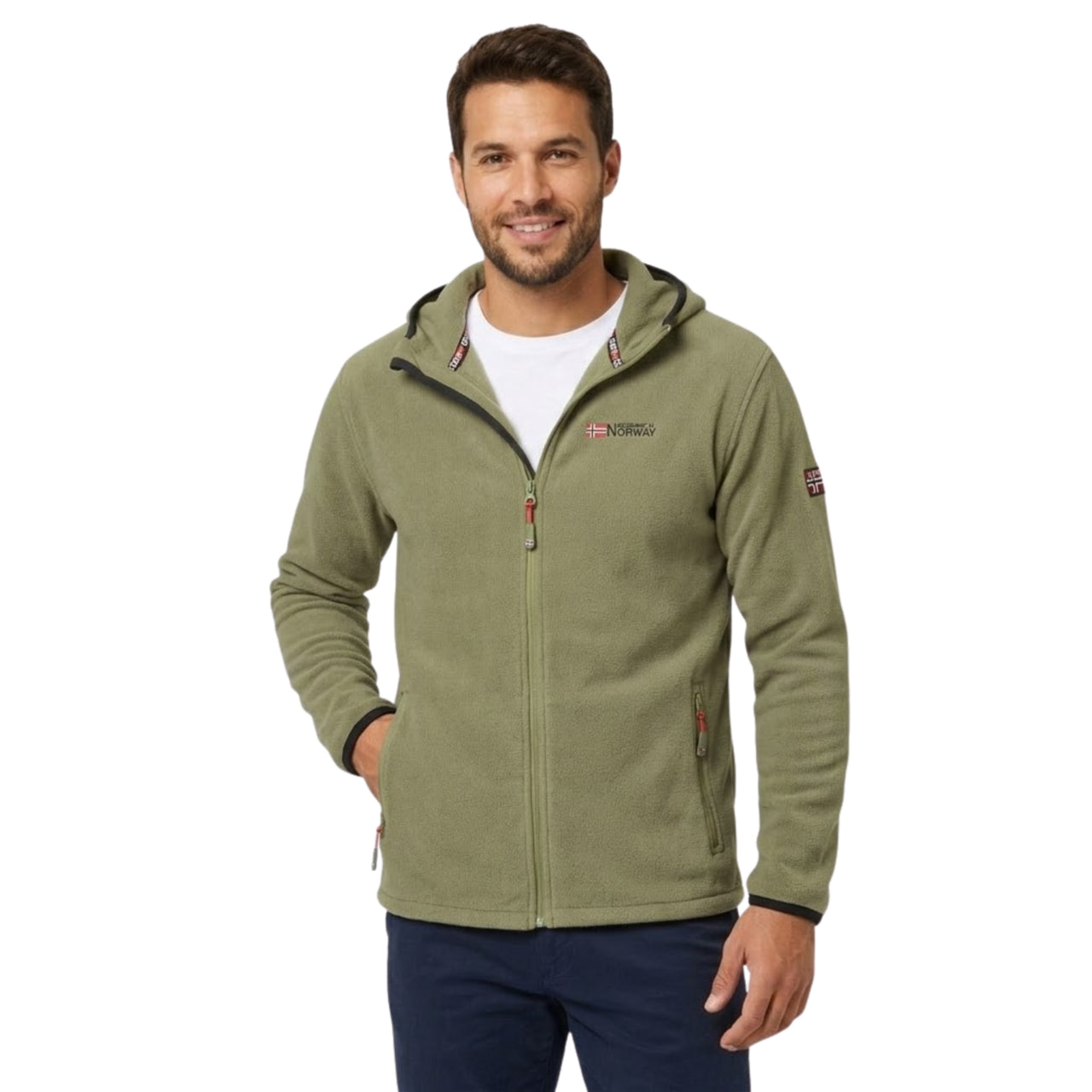 Dünne Fleecejacke für Herren: Leicht und bequem | Integrierte Kapuze: Zusätzlicher Schutz vor Kälte | Durchgehender Reißverschluss: Praktisch und modern | Seitentaschen: Funktional für den Alltag | Flagge und Aufdruck auf der Vorderseite: Signatur Geographical Norway Lässiger Outdoor-Stil: Ideal für die Übergangszeit | Material: 100 % Polyester | Herkunft: Hergestellt in Bangladesch