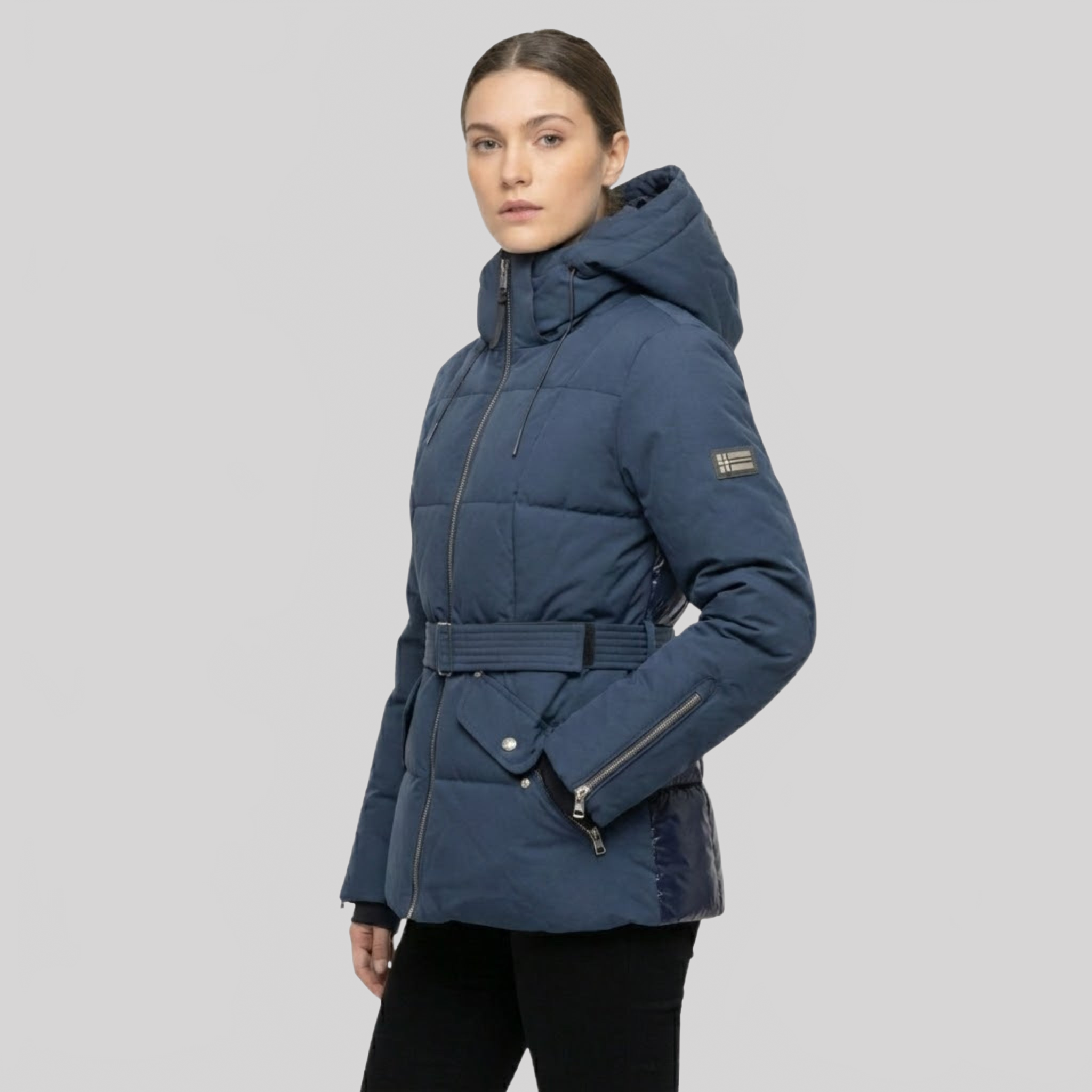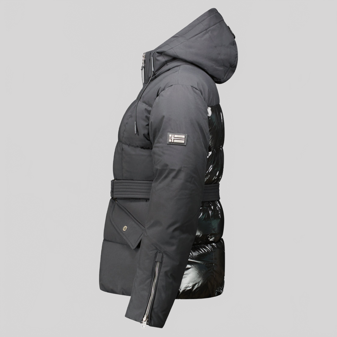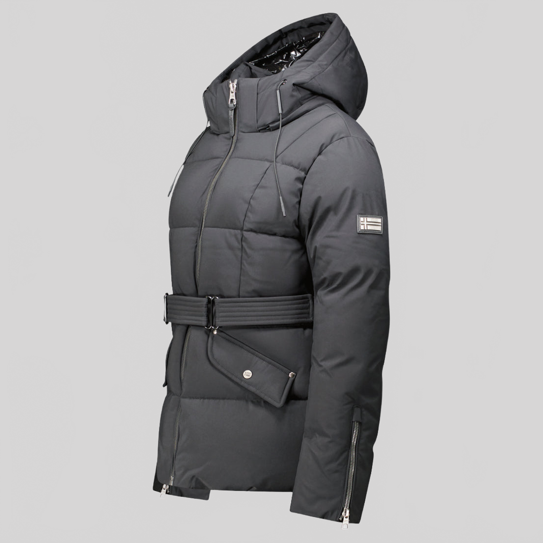 Verschaffen Sie sich einen modernen und bequemen Look mit der Jacke "Alfea" für Damen von Geographical Norway. Diese kurze Jacke aus zwei Materialien besticht durch ihre verstellbare und abnehmbare Kapuze, die praktisch ist, um sich den Bedingungen anzupassen. Der Taillengürtel sorgt für eine feminine und elegante Passform, während die verstellbaren Ärmelbündchen und das markante Abzeichen am Ärmel für zusätzlichen Charakter sorgen. Die Jacke ist ideal für den Winter und vereint Wärme, Komfort und Stil, um alle Ihre Ausflüge in die Stadt und den Alltag zu begleiten.