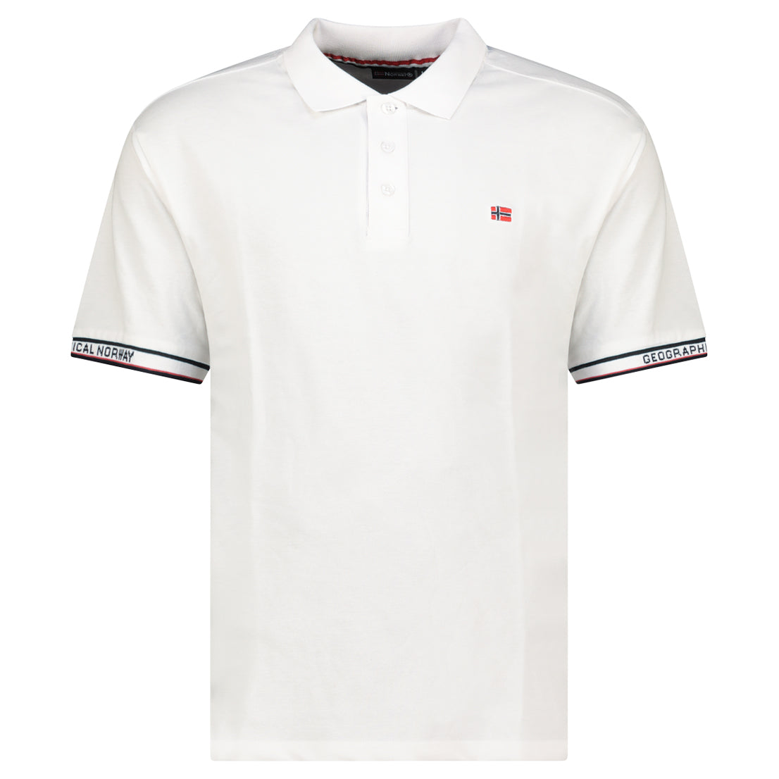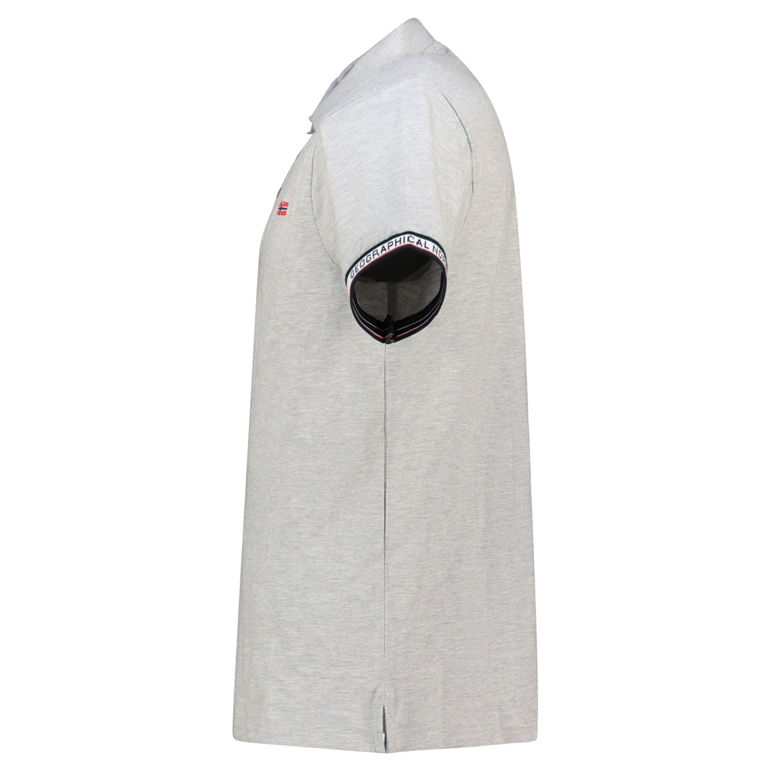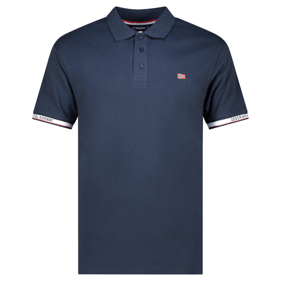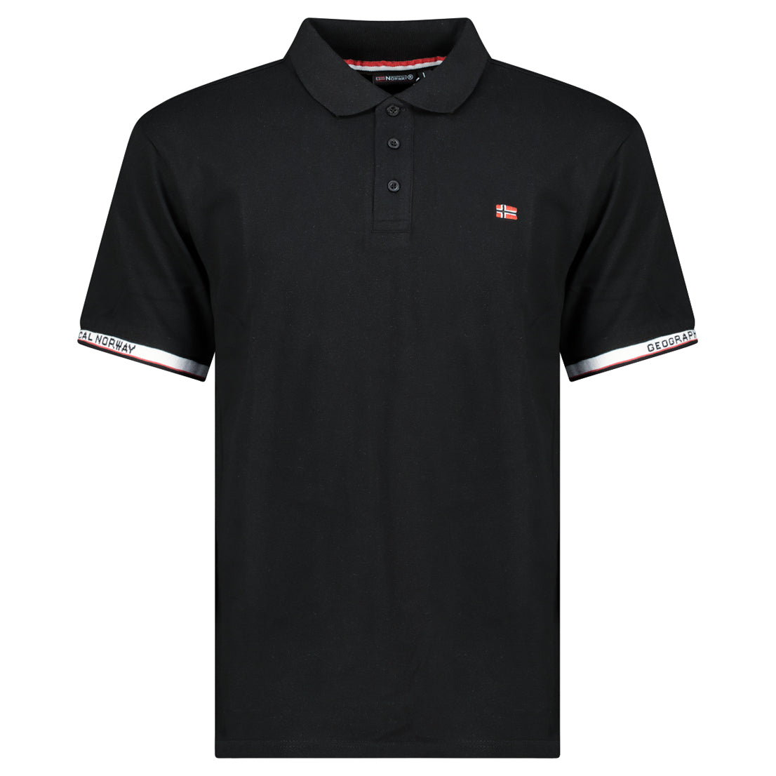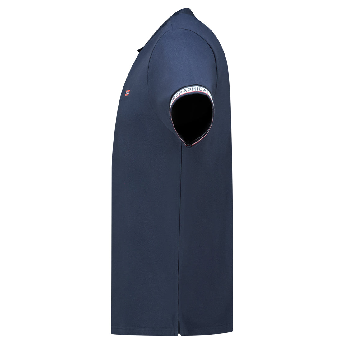 Herren-Polohemd mit kurzen Ärmeln: Leicht und bequem | Kragen mit 3 Knöpfen: Klassischer, strukturierter Stil | Bedruckte Ärmelenden: Modernes, unverwechselbares Detail | Flagge auf der Brust: Signatur Geographical Norway Material mit Elasthan: Komfort und Bewegungsfreiheit | Materialzusammensetzung: 95 % Baumwolle, 5 % Elasthan | Herkunft: Hergestellt in Bangladesch