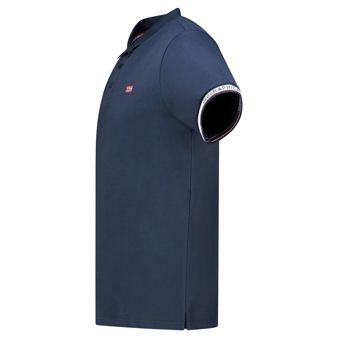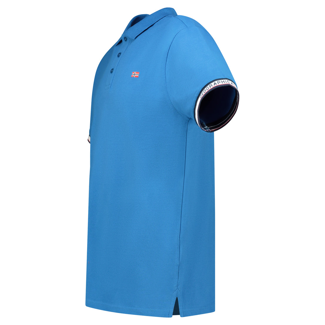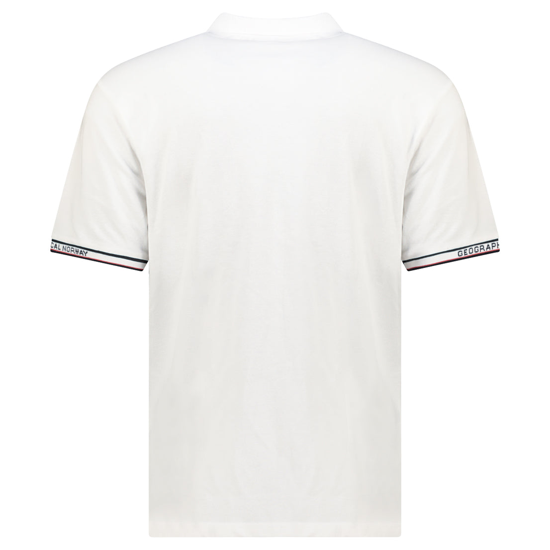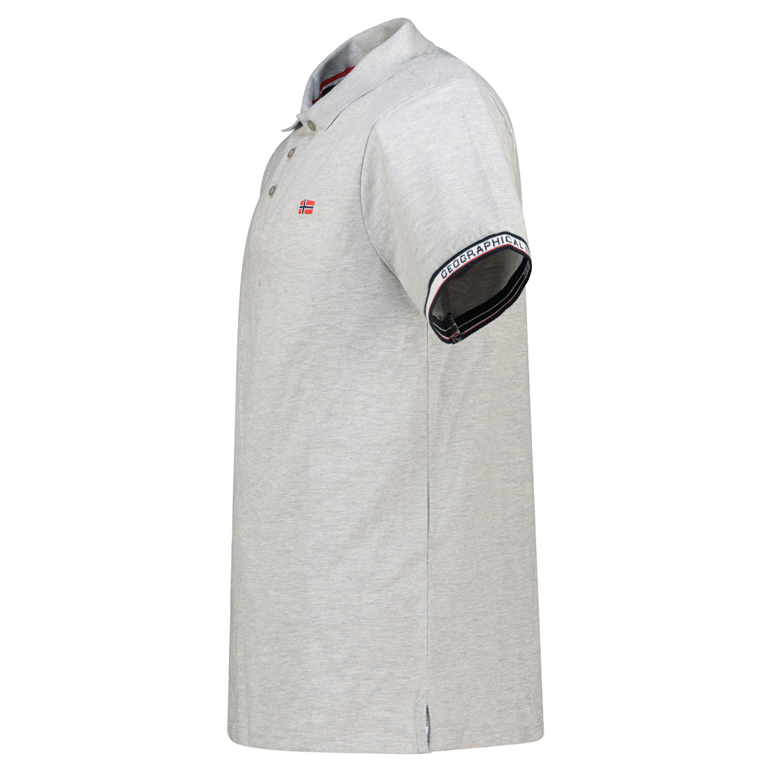 Herren-Polohemd mit kurzen Ärmeln: Leicht und bequem | Kragen mit 3 Knöpfen: Klassischer, strukturierter Stil | Bedruckte Ärmelenden: Modernes, unverwechselbares Detail | Flagge auf der Brust: Signatur Geographical Norway Material mit Elasthan: Komfort und Bewegungsfreiheit | Materialzusammensetzung: 95 % Baumwolle, 5 % Elasthan | Herkunft: Hergestellt in Bangladesch