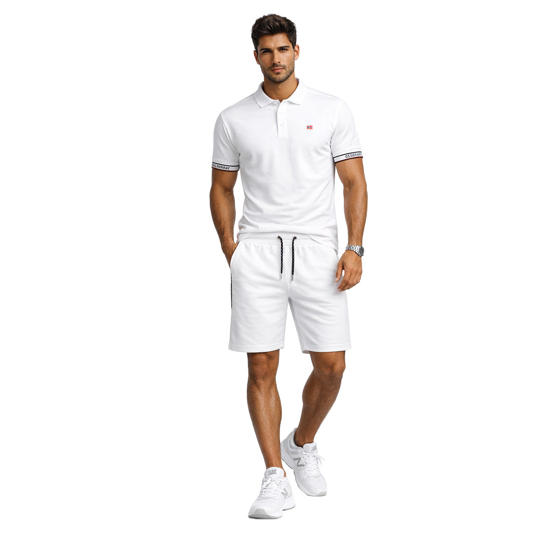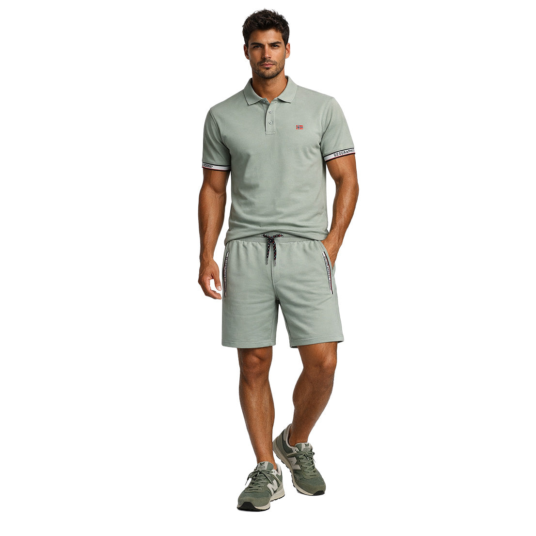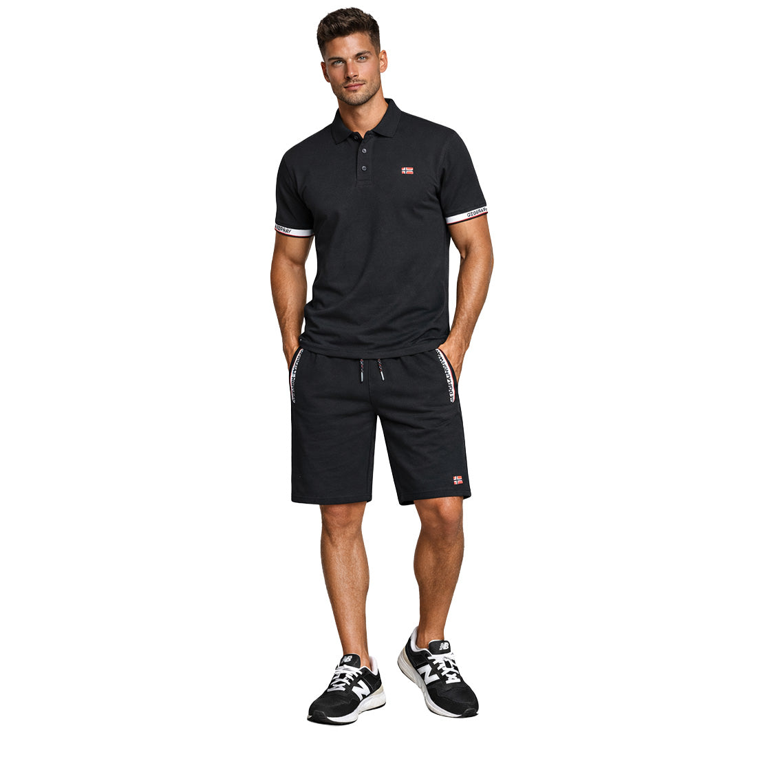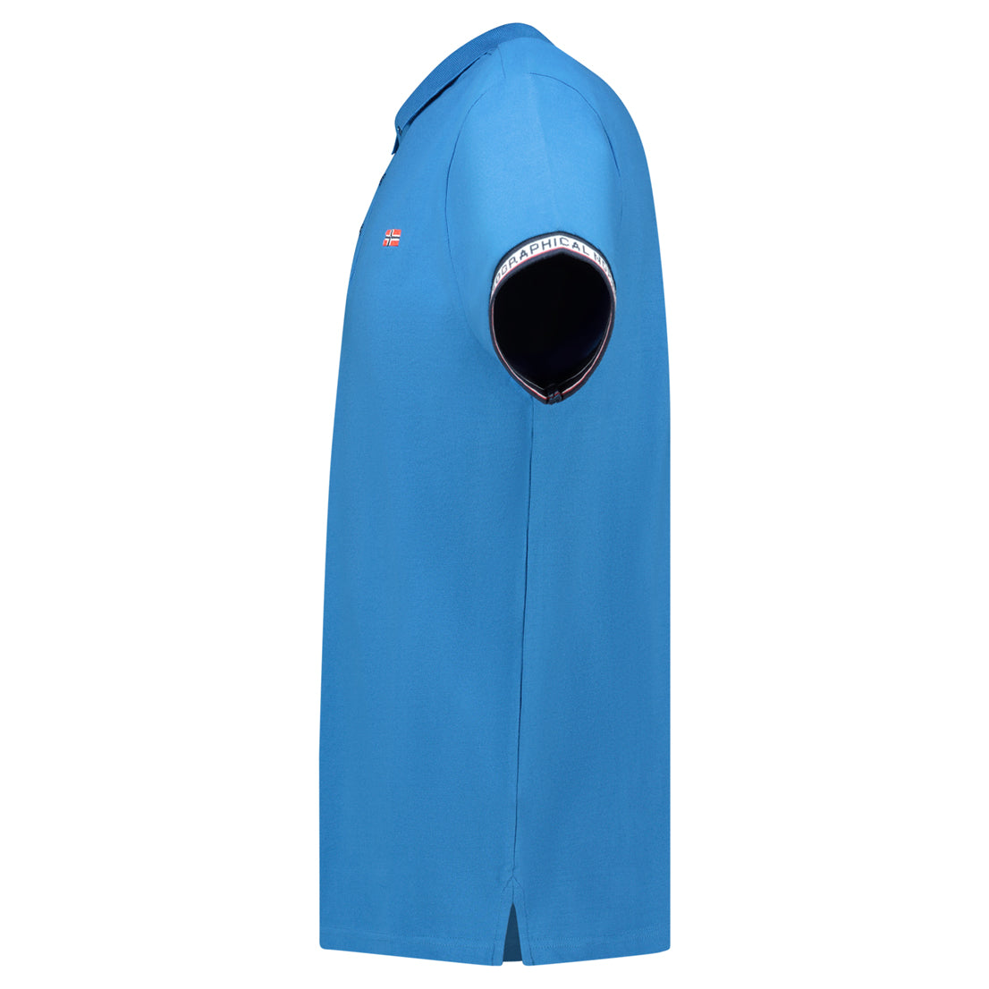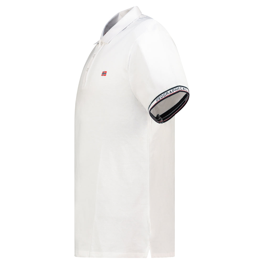 Herren-Polohemd mit kurzen Ärmeln: Leicht und bequem | Kragen mit 3 Knöpfen: Klassischer, strukturierter Stil | Bedruckte Ärmelenden: Modernes, unverwechselbares Detail | Flagge auf der Brust: Signatur Geographical Norway Material mit Elasthan: Komfort und Bewegungsfreiheit | Materialzusammensetzung: 95 % Baumwolle, 5 % Elasthan | Herkunft: Hergestellt in Bangladesch