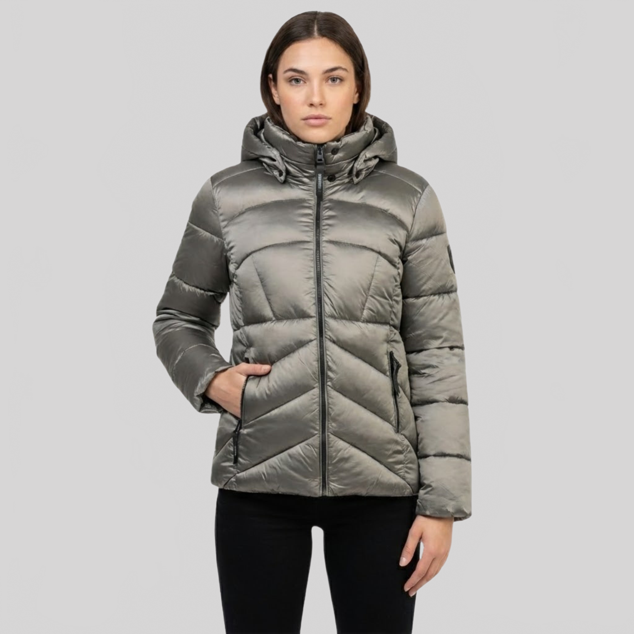 Die Damenjacke "Blanche Short" von Geographical Norway vereint Wärme und Eleganz in einem kürzeren Format. Ihre moderne Fischgrät-Steppung und die abnehmbare Kapuze sorgen für Komfort und Stil, während die Öffnung mit dem eingespritzten Zwei-Wege-Reißverschluss Praktikabilität und Bewegungsfreiheit bietet. Das markante Badge auf dem Arm unterstreicht die Authentizität dieser winterlichen steppjacke , die sich perfekt für einen raffinierten Alltagslook eignet.