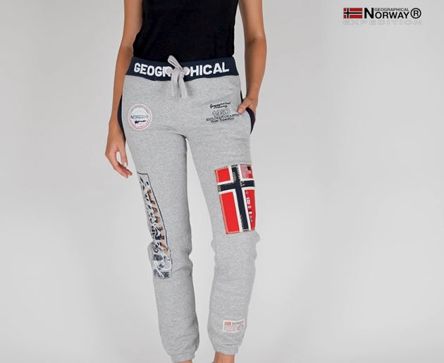Entdecken Sie die Jogginghose "Myer" von Geographical Norway für Damen. Diese Hose bietet mit ihrem durch einen Gummizug verengten Saum optimalen Tragekomfort. Außerdem ist sie an den Beinen mit zahlreichen Abzeichen, Stickereien und Drucken in einem unverwechselbaren norwegischen Thema verziert.