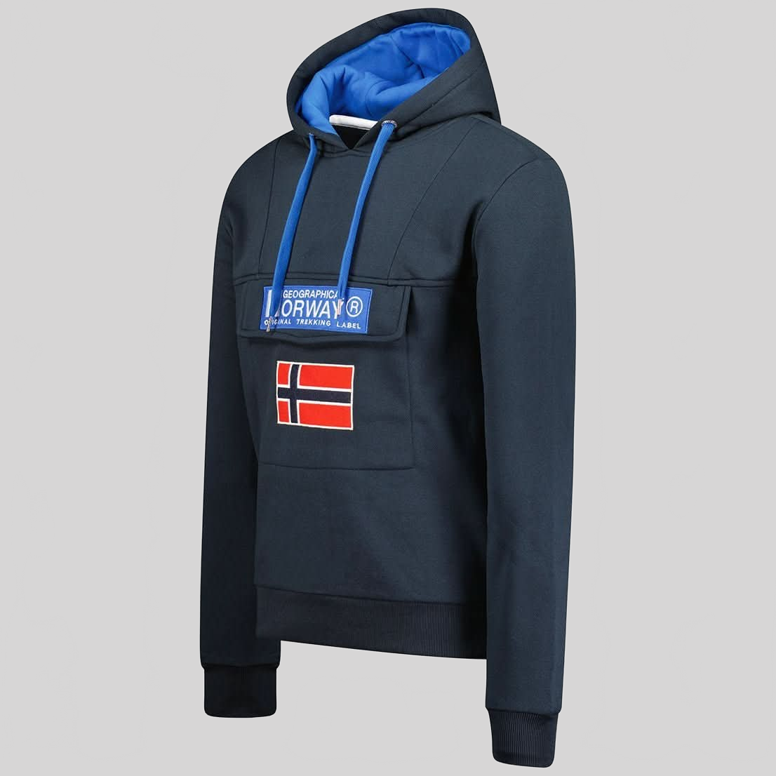 Entdecken Sie den Kapuzenpullover "GADRIEN" für Herren von Geographical Norway, ein trendiges und bequemes Kleidungsstück. Dieses Sweatshirt verfügt über ein Zugband, mit dem Sie die Kapuze nach Ihren Bedürfnissen einstellen können. Die gerippten Ärmelbündchen aus Fleece sorgen für eine perfekte Passform und verleihen dem Pullover einen stilvollen Touch. Mit den eleganten Stickereien auf der aufgesetzten Tasche vorne ist dieses Sweatshirt modern und anspruchsvoll zugleich. Genießen Sie mit diesem Kapuzenpullover von Geographical Norway einen urbanen und lässigen Look.