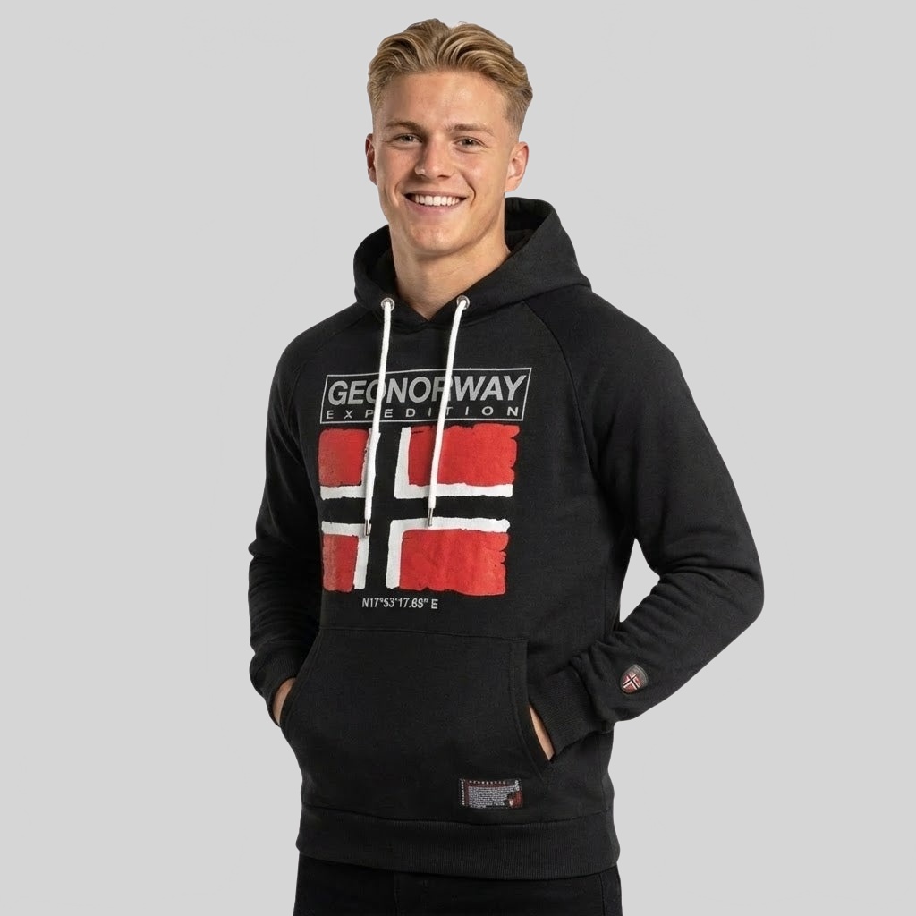 Entdecken Sie das Herren-Sweatshirt "GAELIG" von Geographical Norway, das perfekt für einen lässigen und modischen Look ist. Dieser Kapuzenpullover verfügt über einen Tunnelzug für eine individuelle Passform sowie eine große Flagge und Prints auf der Vorderseite für einen auffälligen Look. Mit einer praktischen Kängurutasche und einem markanten Abzeichen am Ärmel bietet dieser Hoodie sowohl Stil als auch Funktionalität. Das Sweatshirt "GAELIG" von Geographical Norway ist die perfekte Ergänzung zu Ihrem Freizeitoutfit und ein Muss für alle Männer, die auf der Suche nach einem Kleidungsstück sind, das sowohl bequem als auch trendy ist.