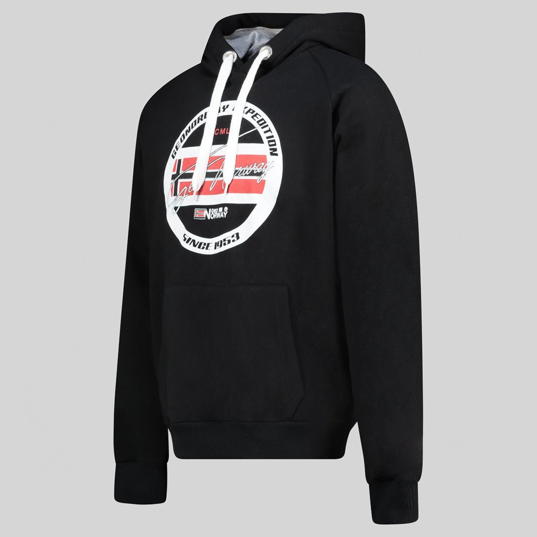 Das Sweatshirt GARIS für Herren von Geographical Norway ist die perfekte Kombination aus Komfort und sportlichem Stil. Hergestellt aus 35 % Polyester und 65 % Baumwolle, bietet es optimale Weichheit für lang anhaltenden Tragekomfort. Dank der Kapuze mit Bindeband können Sie den Pullover nach Bedarf anpassen, während die Kängurutaschen auf der Vorderseite eine praktische Aufbewahrungsmöglichkeit für Ihre Hände oder kleine Gegenstände bieten. Mit seinen markanten Aufdrucken wird dieses Sweatshirt mit Passepartout zu einem Must-have für Ihre lässigen Tage.