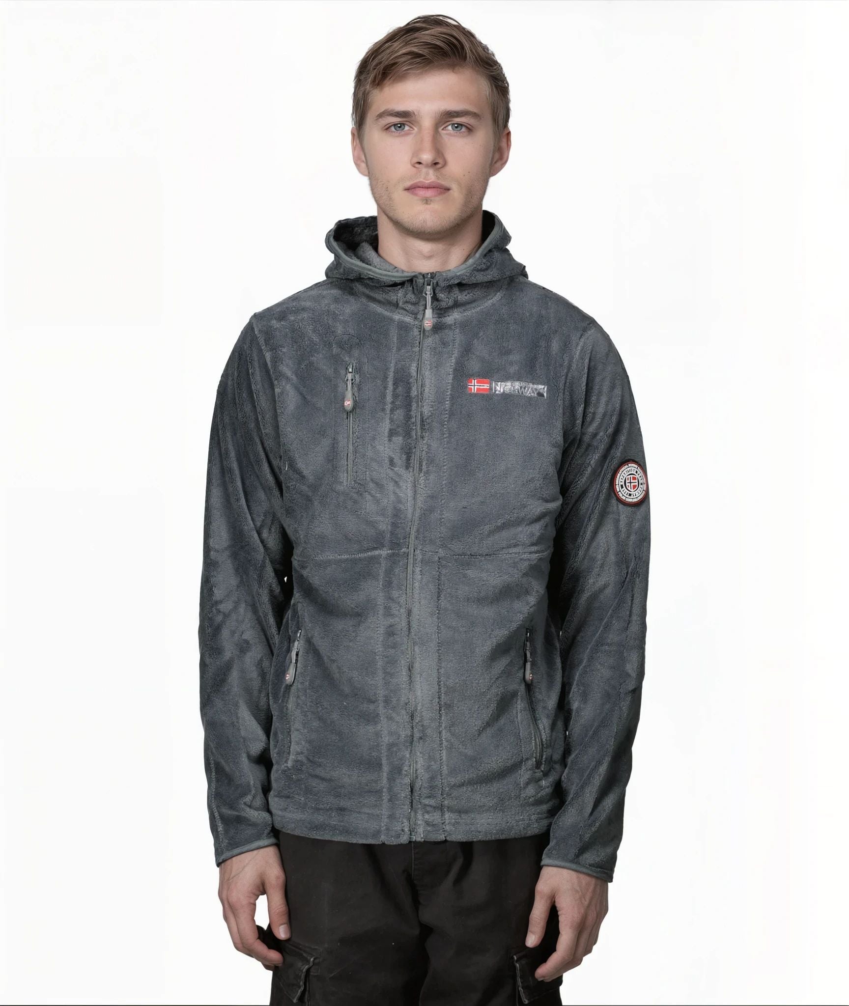 Entdecken Sie das "Upload" Fleece mit Reißverschluss von Geographical Norway für Herren. Dieses Fleece hat eine stilvolle Stickerei auf der Brust und fühlt sich sehr angenehm an. Es verfügt über praktische Reißverschlusstaschen, ein gesticktes Logo am Kragen und einen PVC-Aufnäher am oberen Ärmel.