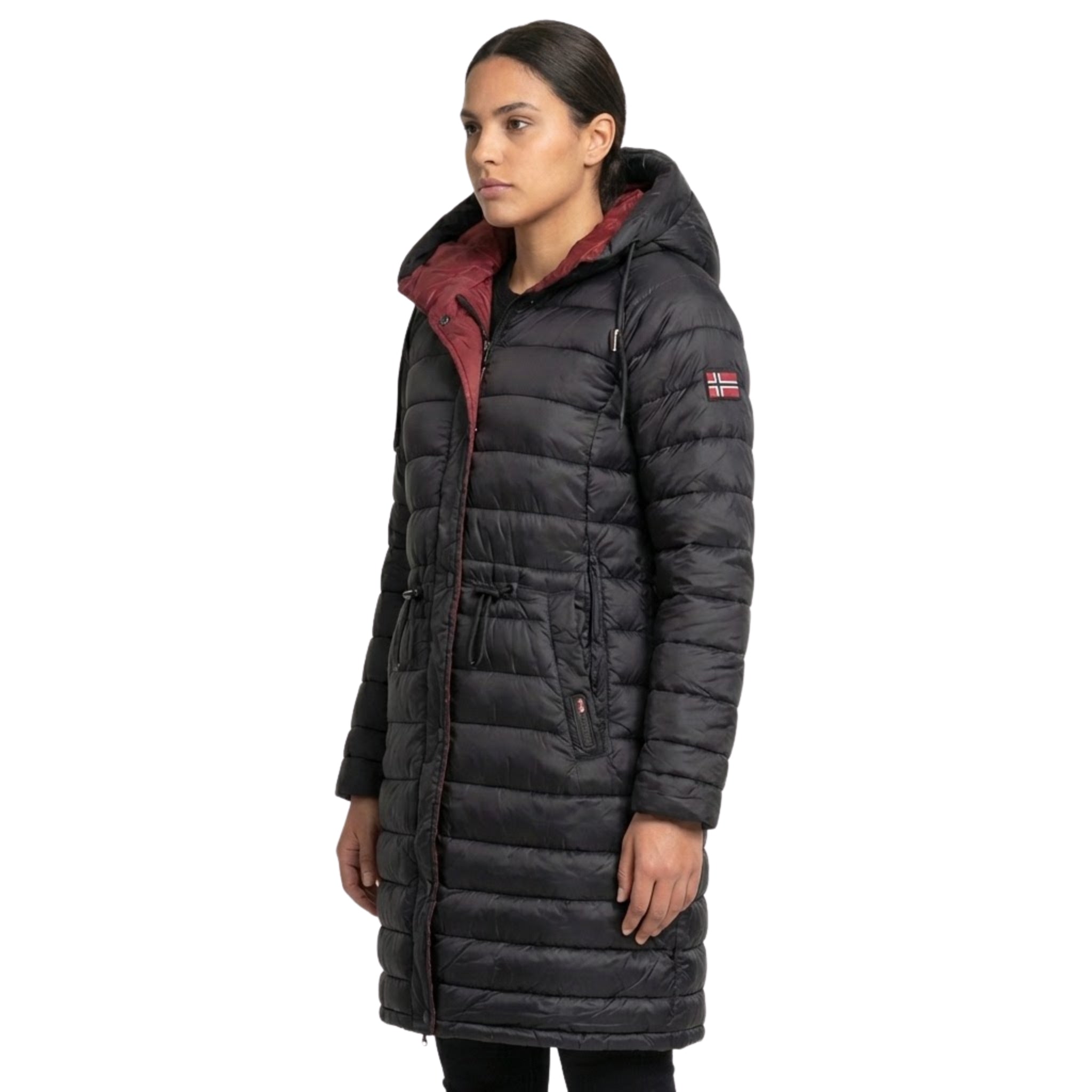 Bleiben Sie stilvoll und warm mit der langen Jacke "Batiga" für Damen von Geographical Norway. Ihr Stehkragen und die Kapuze mit Kontrastfutter bieten optimalen Schutz vor Kälte und verleihen ihr gleichzeitig einen Hauch von Stil. Dank der Tunnelzugbänder an der Kapuze und an der Taille profitieren Sie von einer individuellen Passform. Der mit Knöpfen verstärkte, eingespritzte Reißverschluss ist robust und praktisch. Ein modernes und funktionelles Modell, das sich perfekt für den Winter eignet.