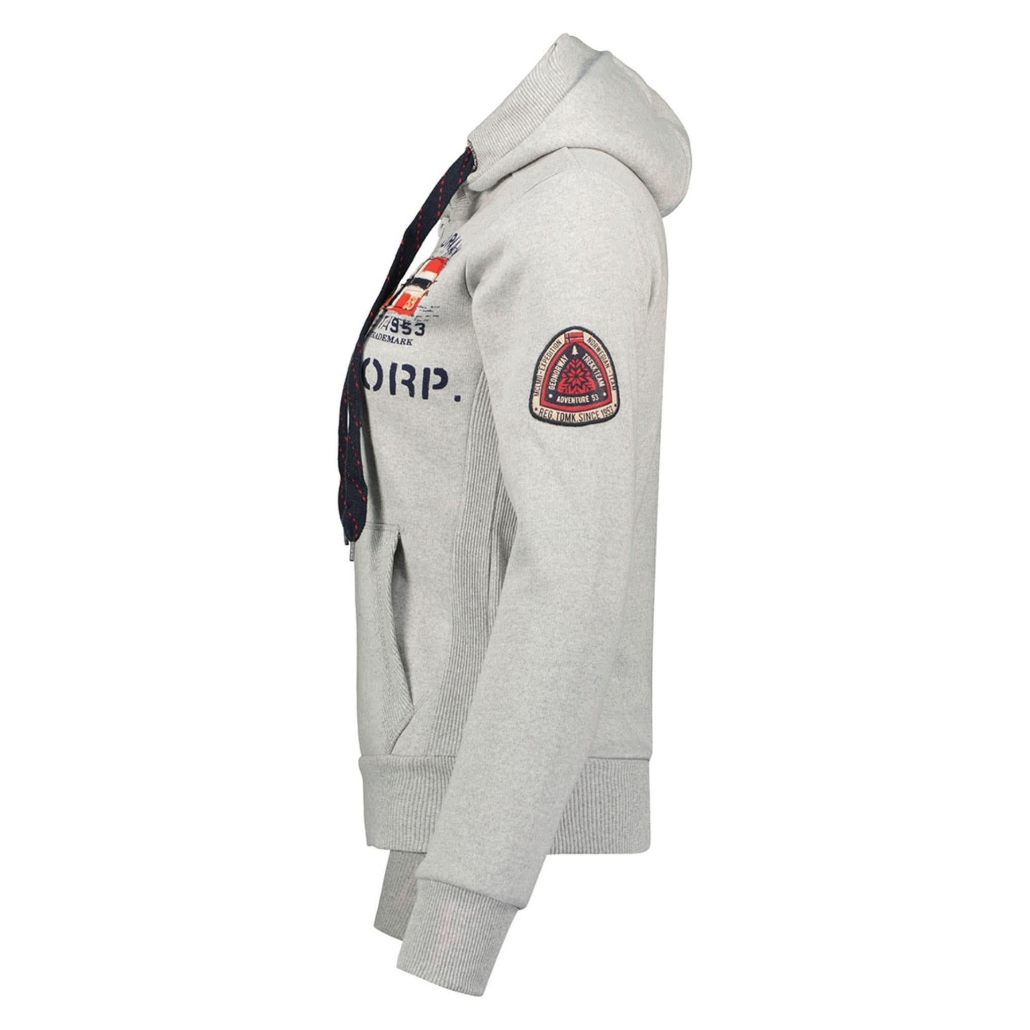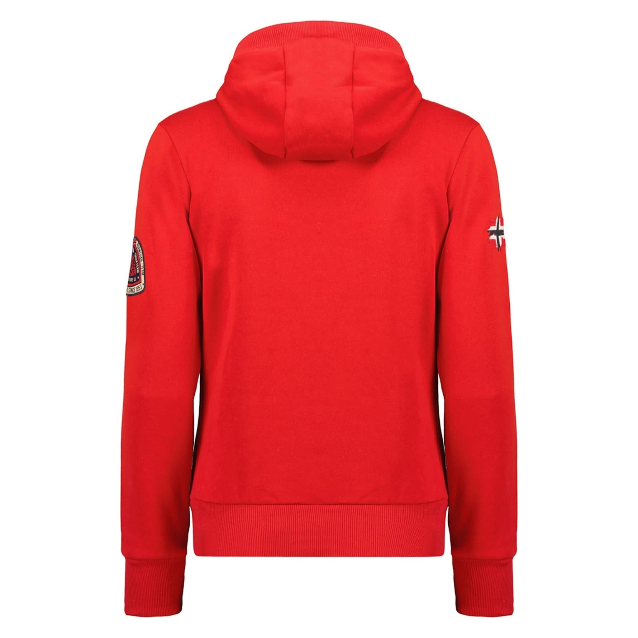 Entdecken Sie das Geographical Norway "Goptaine" Sweatshirt mit Kopfbedeckung für Frauen. Dieses Sweatshirt für Frauen ist mit einer Kopfbedeckung und einer Kapuze gestaltet. Es hat eine Flagge auf dem Arm, Kängurutaschen, einen markanten Aufdruck auf der Vorderseite mit einer Flagge und einem Abzeichen sowie ein Bindeband zum Zusammenziehen.