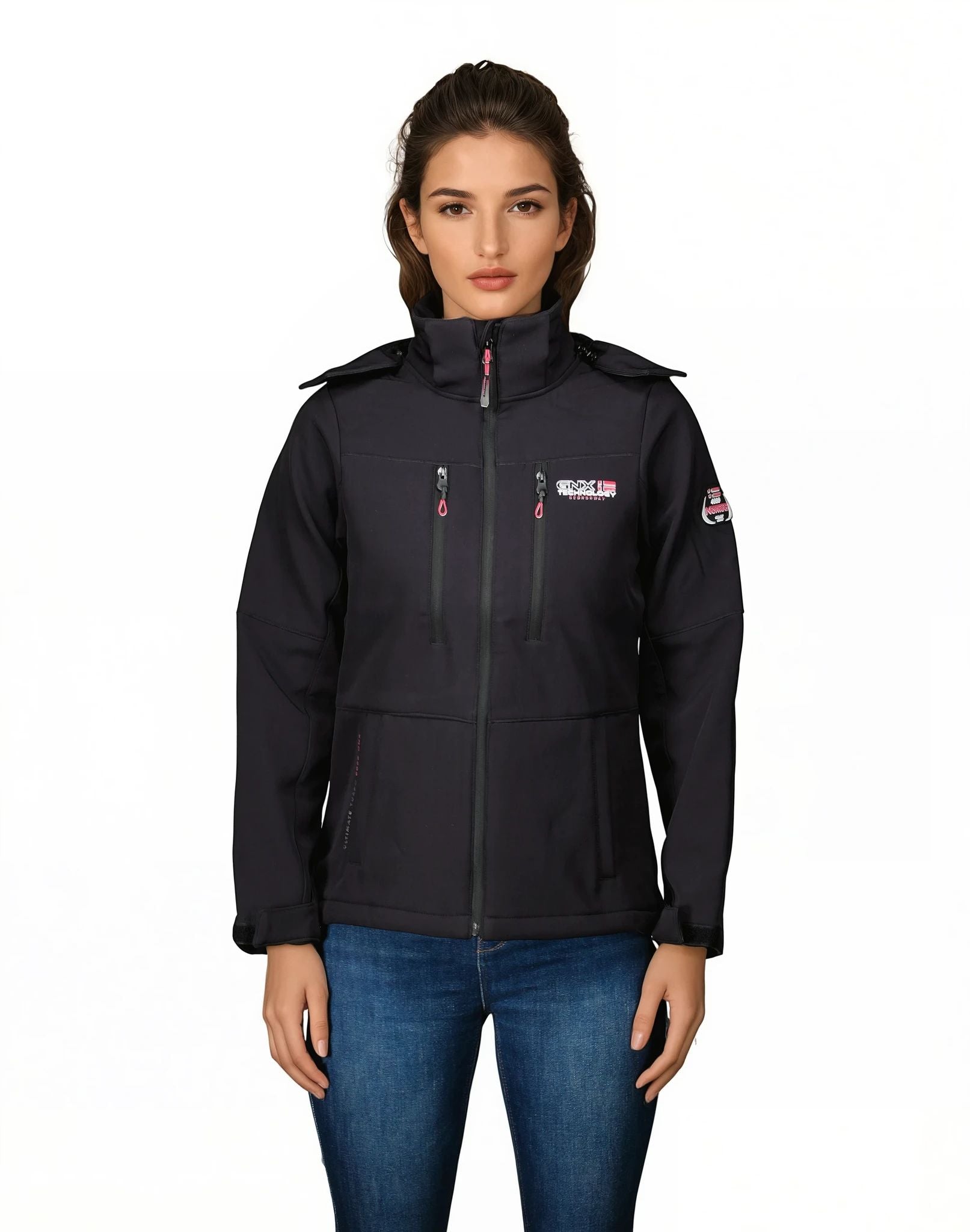 Entdecken Sie die Kapuzen-Softshell "Timmex" von Geographical Norway für Frauen. Diese Funktionsjacke bietet eine Kapuze und zwei eingespritzte Reißverschlusstaschen auf der Brust sowie ein PVC-Abzeichen auf dem Ärmel.