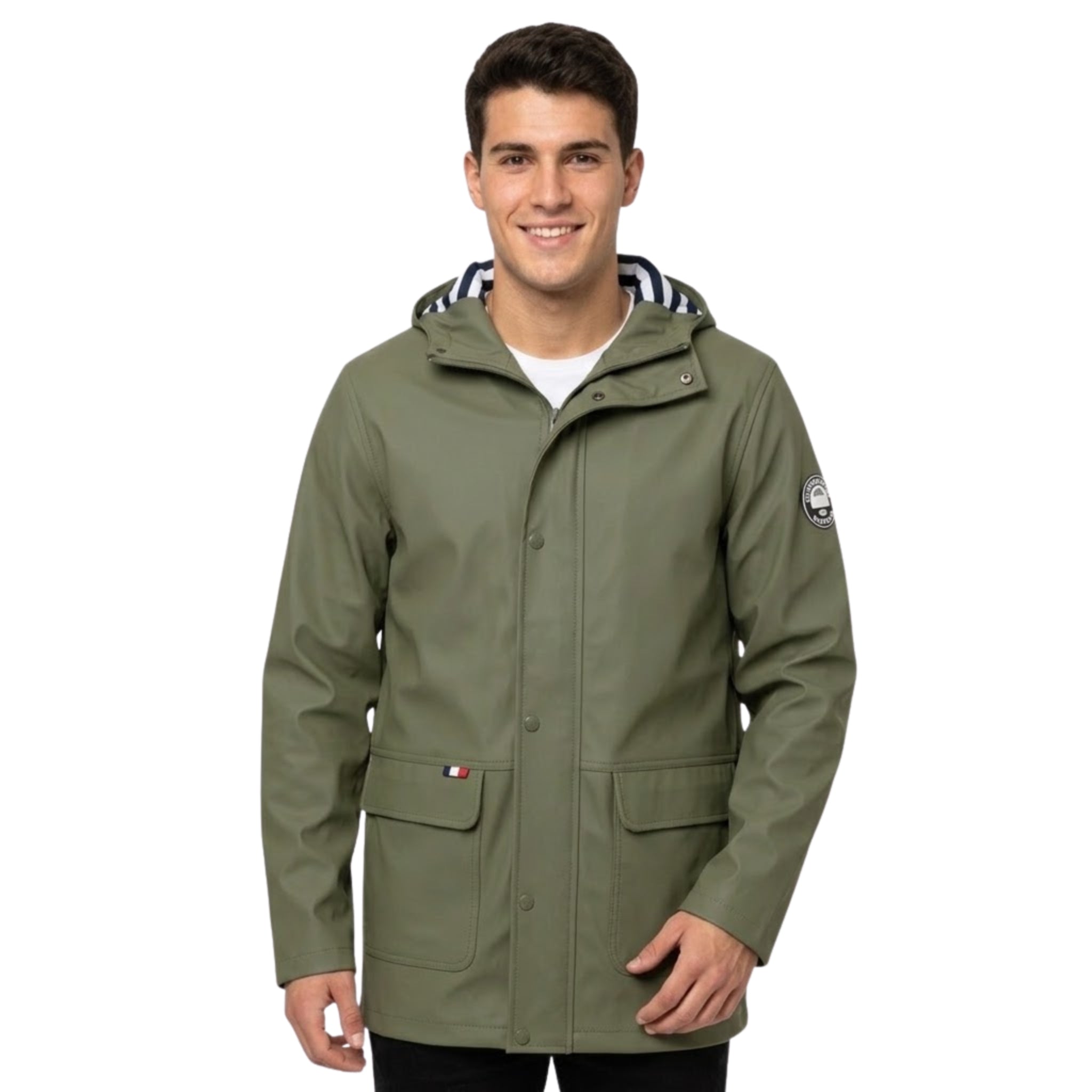 La veste "Curieuse Men" de Geographical Norway est un blouson long imperméable, conçu pour affronter les journées pluvieuses avec style. Fonctionnelle et élégante, elle se distingue par la doublure contrastée de sa capuche qui apporte une touche marine originale. Idéale pour rester au sec avec raffinement, elle est équipée de deux poches pratiques à l’avant pour ranger vos essentiels ou protéger vos mains du froid. Sa fermeture à boutons lui confère un look classique et soigné, tandis que les badges sur la manche et la capuche renforcent son identité moderne.