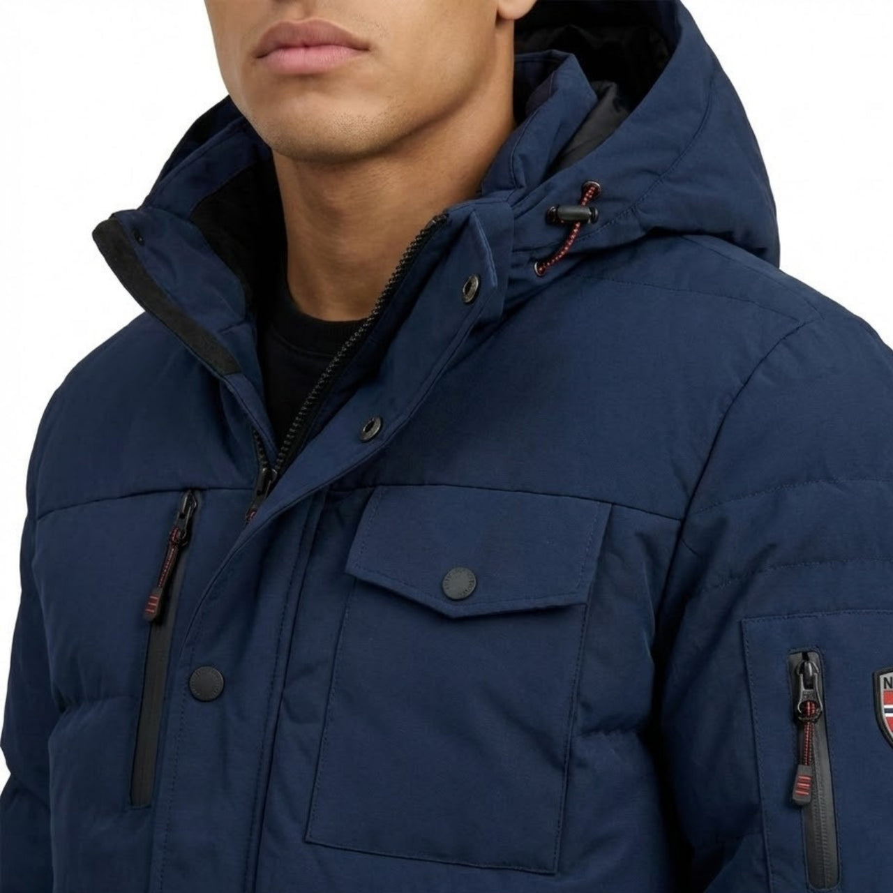 Discover Geographical Norway 's "ALDESTO" parka for men. This hooded parka features two buttoned side pockets and an injected zipped chest pocket for practical, functional style.
