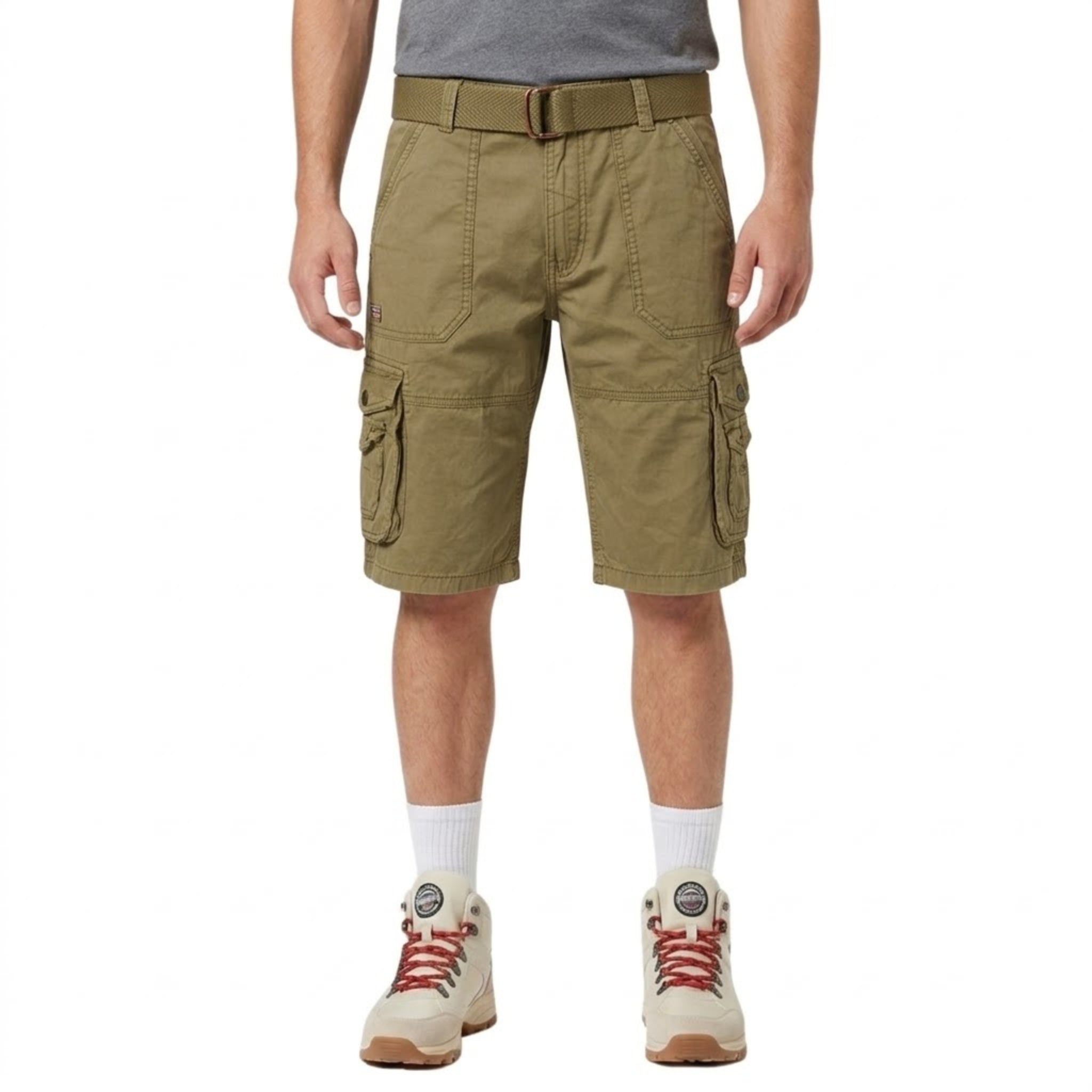 Discover the Perou Bermuda shorts from Geographical Norway, a practical yet stylish garment for men. Featuring belt loops at the waist and a tightening waistband, these straight-cut Bermuda shorts have numerous pockets for maximum functionality. Embroidery on the pocket adds a touch of originality, making these Bermuda shorts an ideal choice for your outdoor activities.