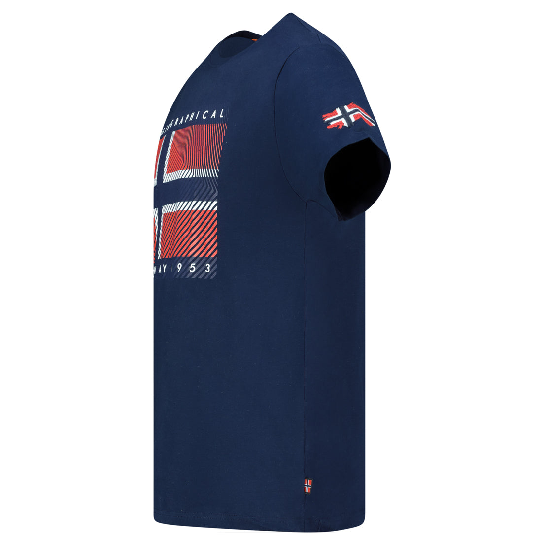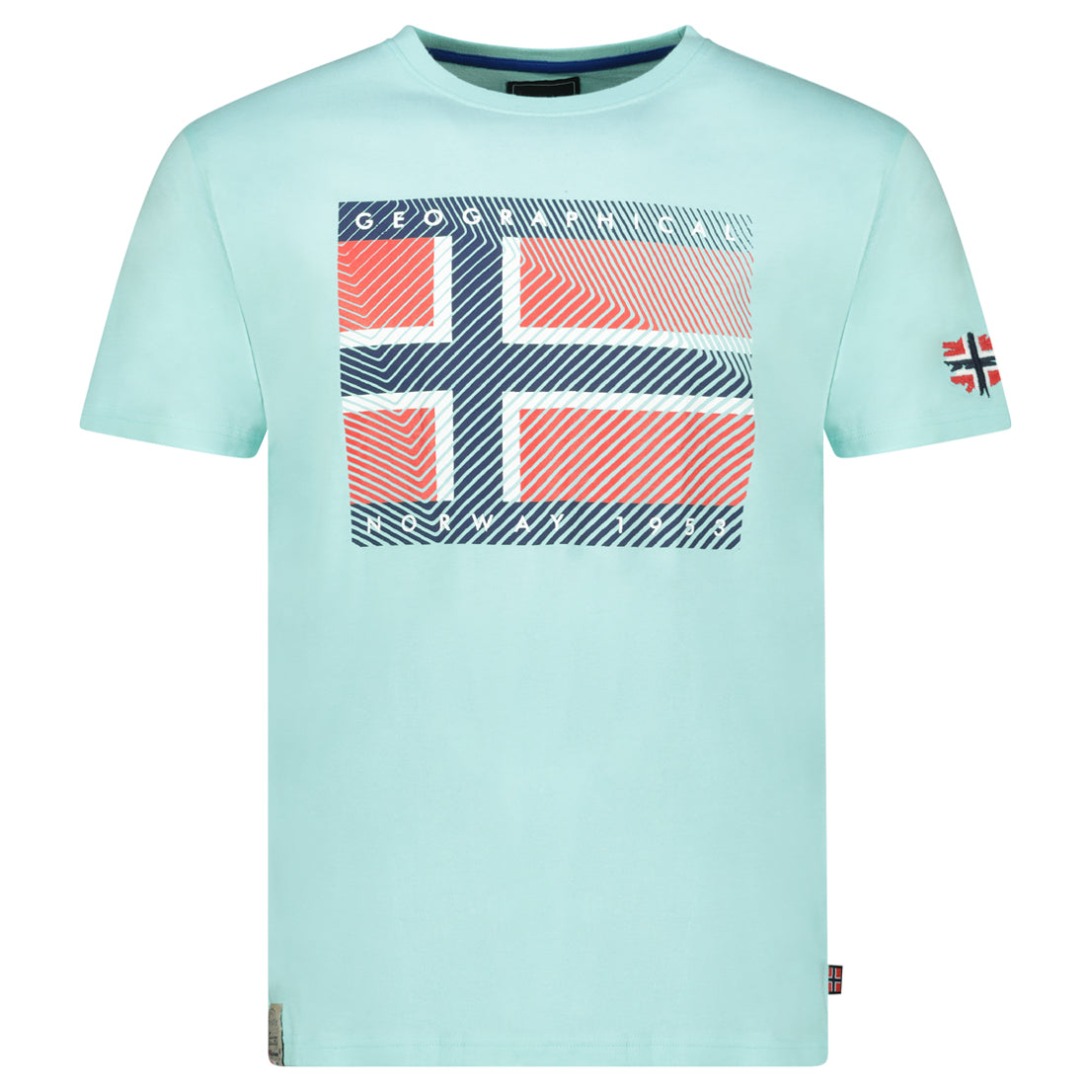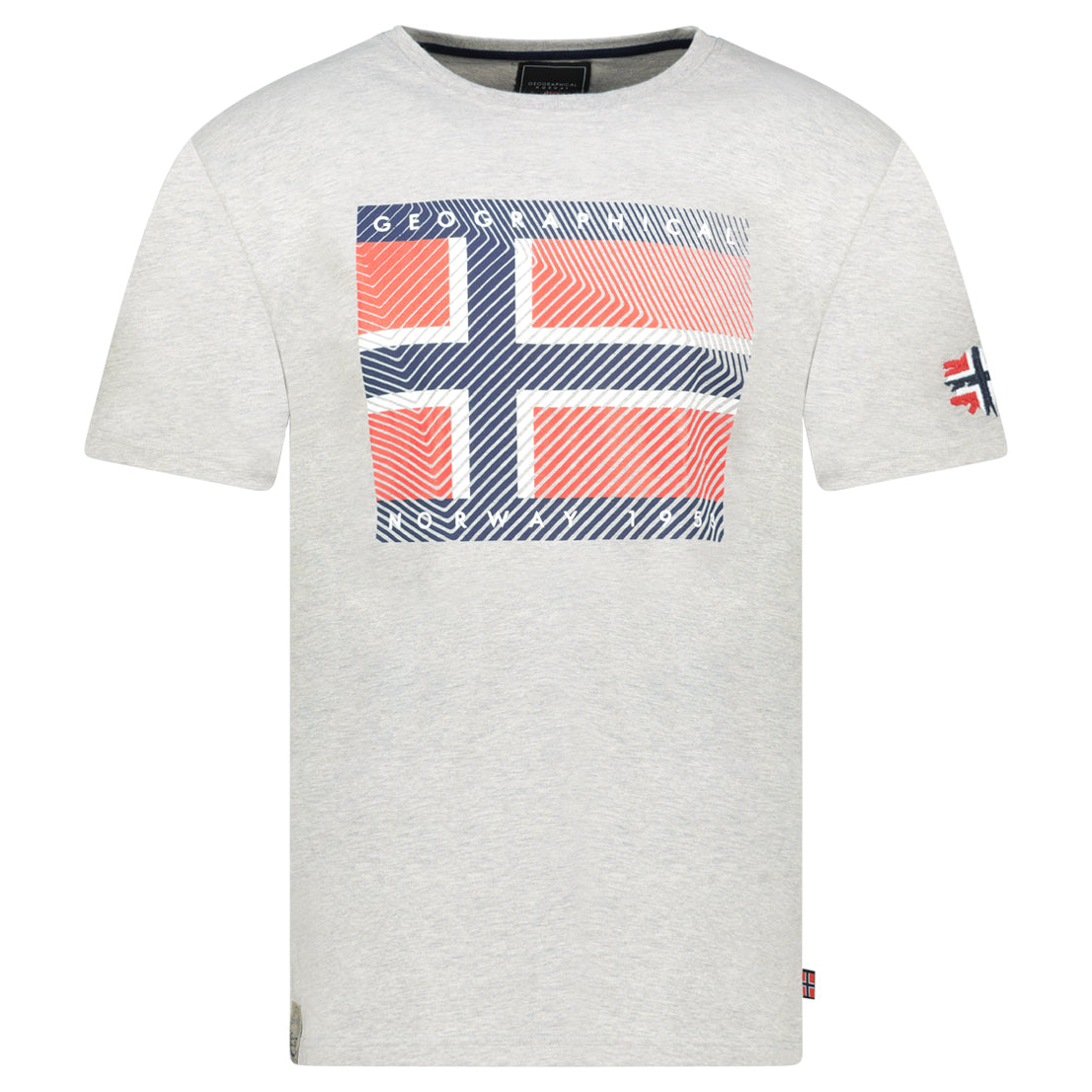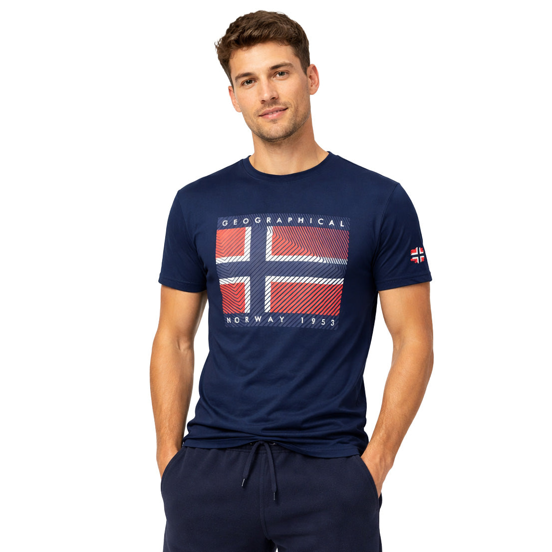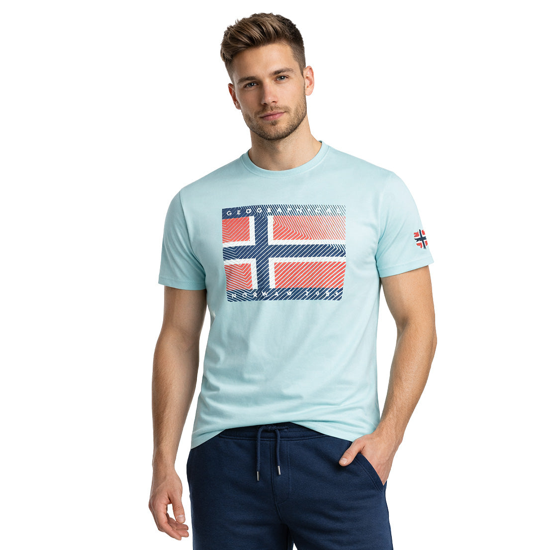 The Geographical Norway "Junter Men" T-shirt Geographical Norway a short-sleeved style with a modern, minimalist design. Featuring a classic round neckline, it offers optimal comfort thanks to its 100% cotton fabric. The lettering on the front adds a distinctive graphic touch, while the flag on the sleeve highlights the brand's authentic identity. Lightweight and comfortable to wear, it is ideal for a casual everyday look.