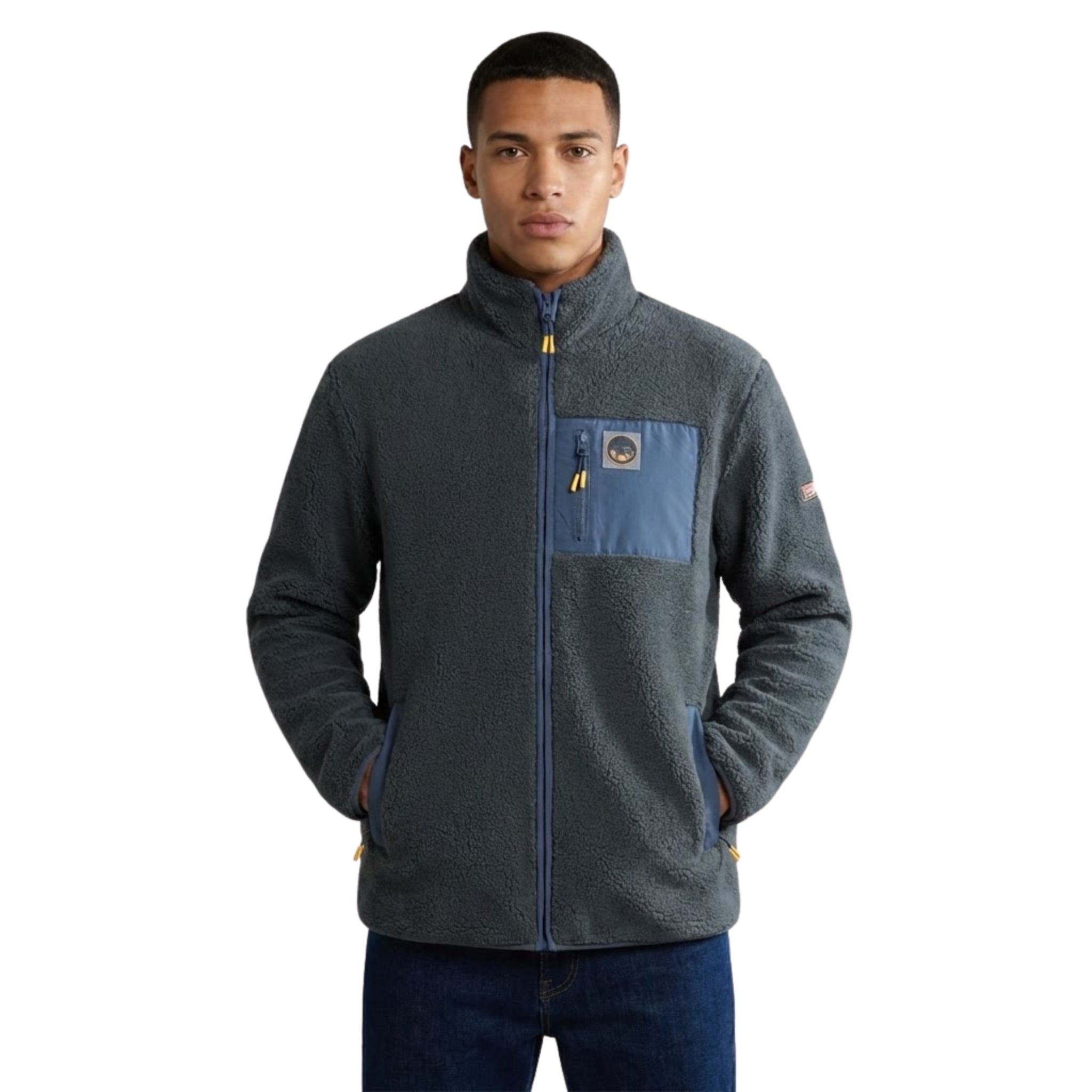Geographical Norway 's "Urock" fleece for men is made of soft, warm sherpa, ideal for cool days in any season. Its stand-up collar provides effective wind protection, while its injected zipper ensures practicality and comfort. A small chest pocket and zipped side pockets provide secure storage. Contrasting zips and pockets add a modern, stylish touch to this essential model.