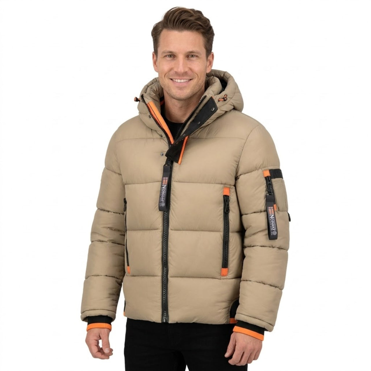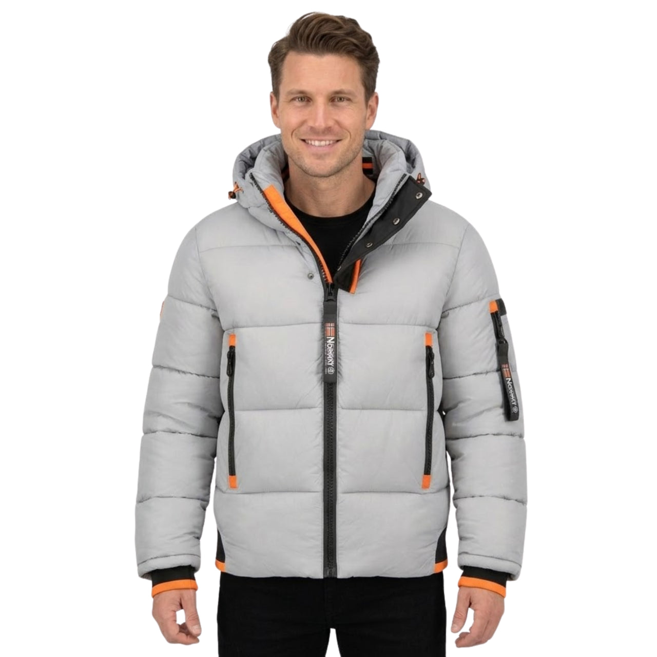 Discover Geographical Norway 's CALIX quilted jacket for men. It features branded details and a removable hood. There are several pockets on the front, and PVC badges on the bottom of the garment, at the top of the hood, on the sleeve and on the back of the collar. There's also embroidery on the chest for a distinctive, modern look.