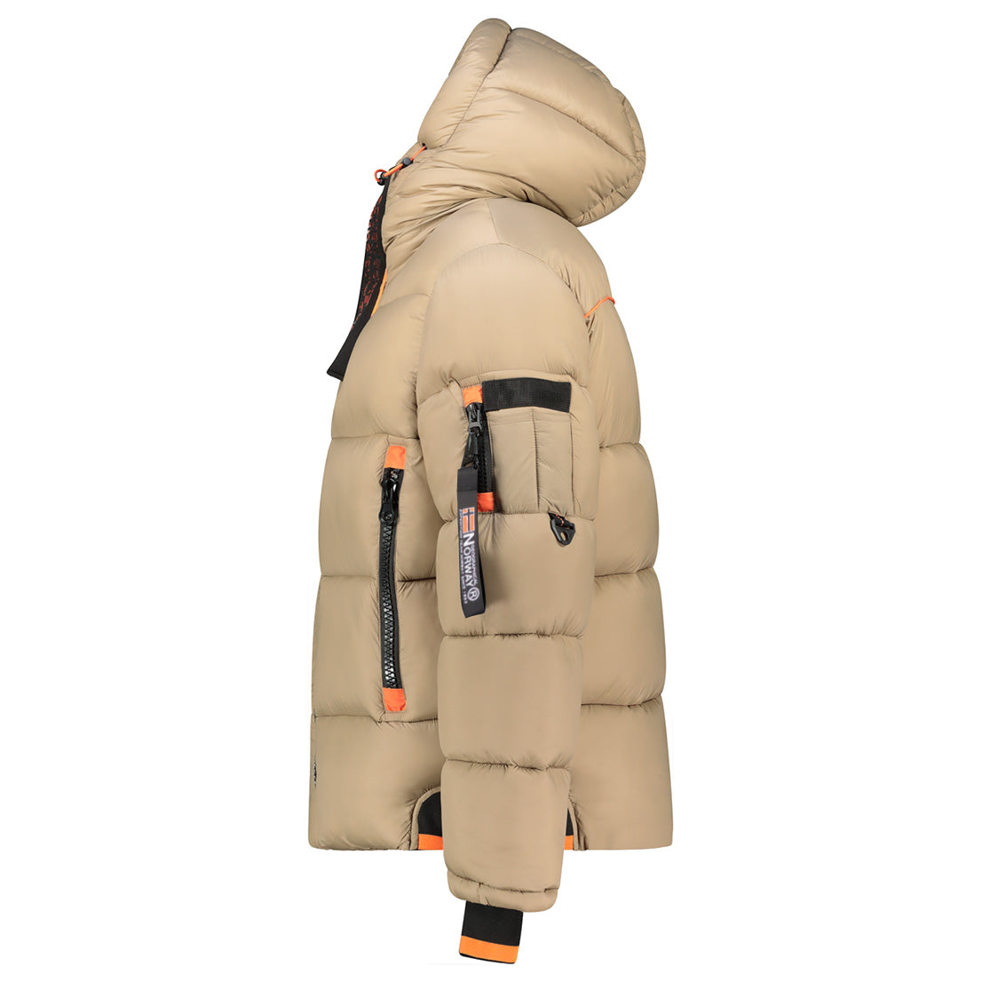 Discover Geographical Norway 's CALIX quilted jacket for men. It features branded details and a removable hood. There are several pockets on the front, and PVC badges on the bottom of the garment, at the top of the hood, on the sleeve and on the back of the collar. There's also embroidery on the chest for a distinctive, modern look.