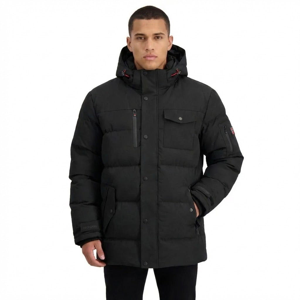 Discover Geographical Norway 's "ALDESTO" parka for men. This hooded parka features two buttoned side pockets and an injected zipped chest pocket for practical, functional style.