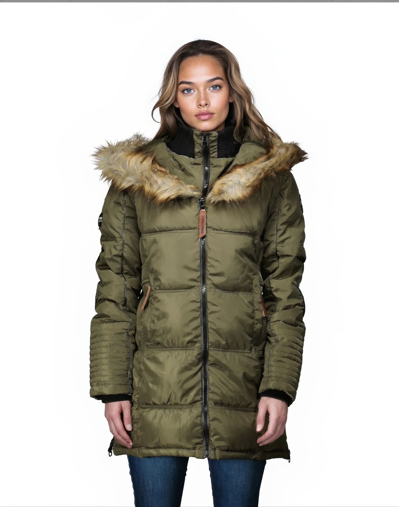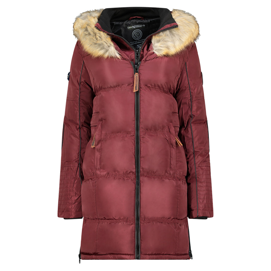 Discover Geographical Norway 's "BEAUTIFUL" parka for women, an elegant and functional piece. Its zipper, hood trimmed with synthetic faux fur, PVC badge and embroidery on the sleeve add a touch of luxury and style to this parka.