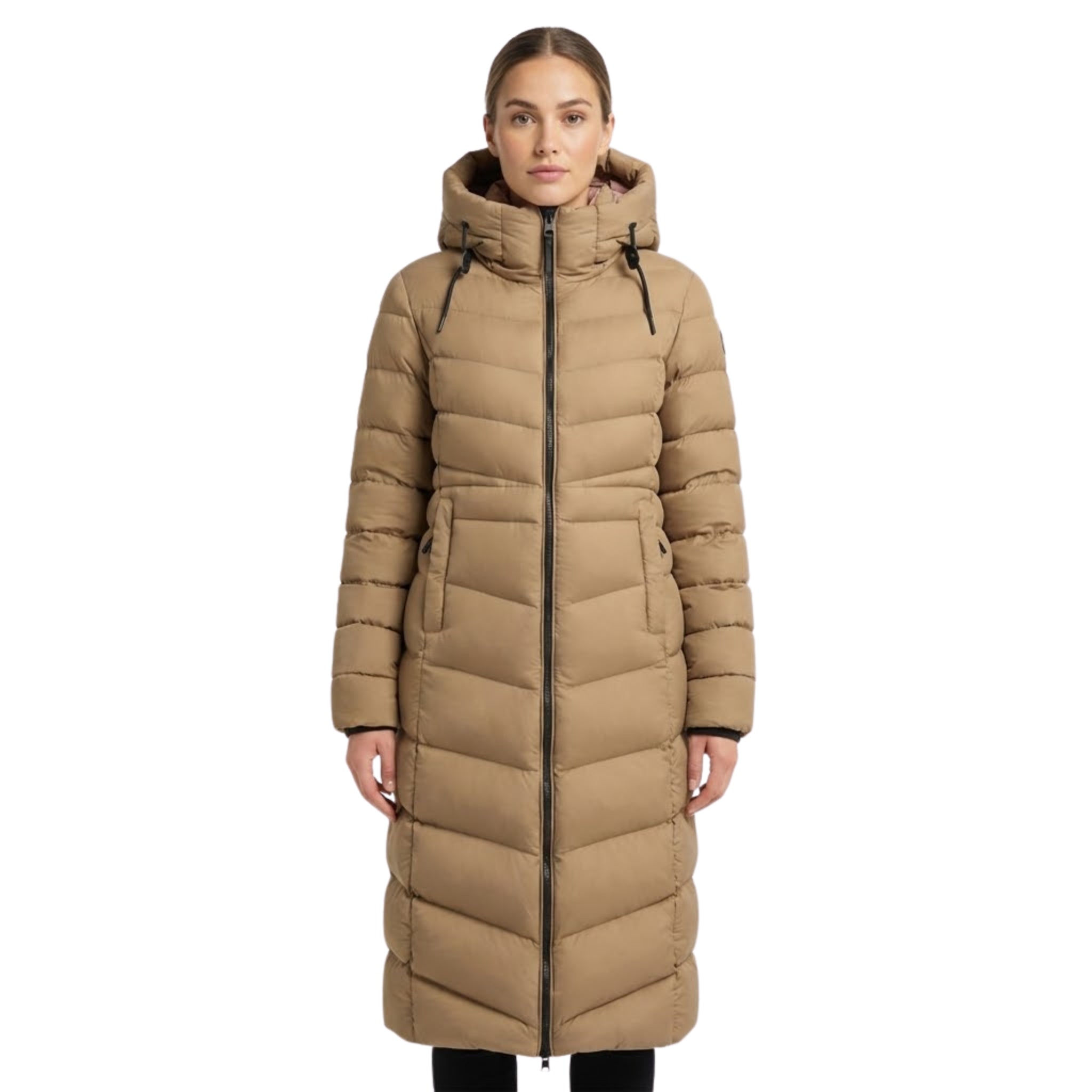 Stay stylish and well protected from the cold with the "Berangere" long parka for women from Geographical Norway. Featuring a protective hood with tightening tie, practical side pockets and distinctive badges on the sleeve and hood, it combines style and functionality. Its elongated cut ensures comfort and warmth, ideal for tackling winter days while maintaining a modern, refined look.