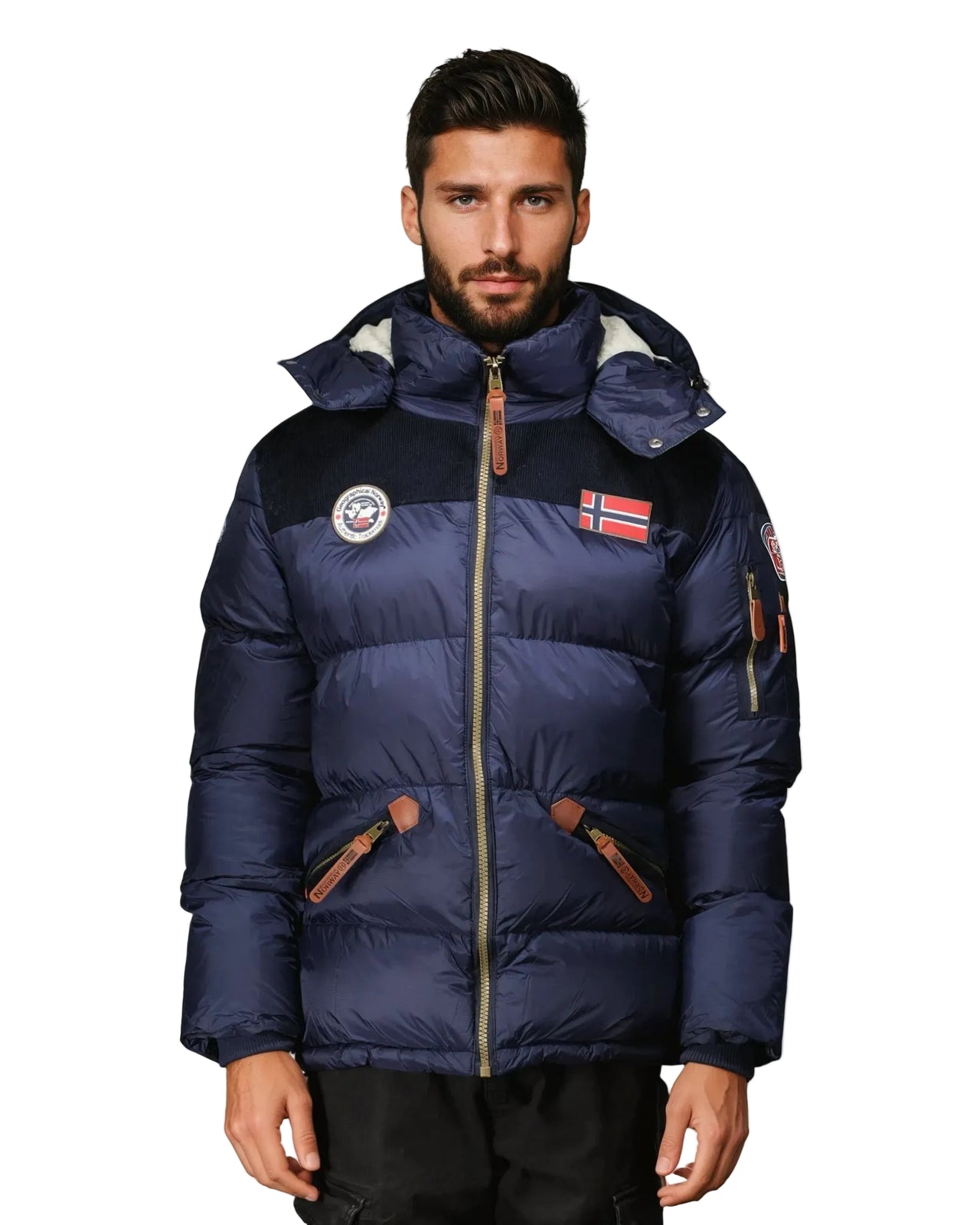 Discover Geographical Norway 's "CELIAN" quilted parka for men. This men's parka features a hood, zipper, side pockets and drawstrings. It also features an arm pocket.