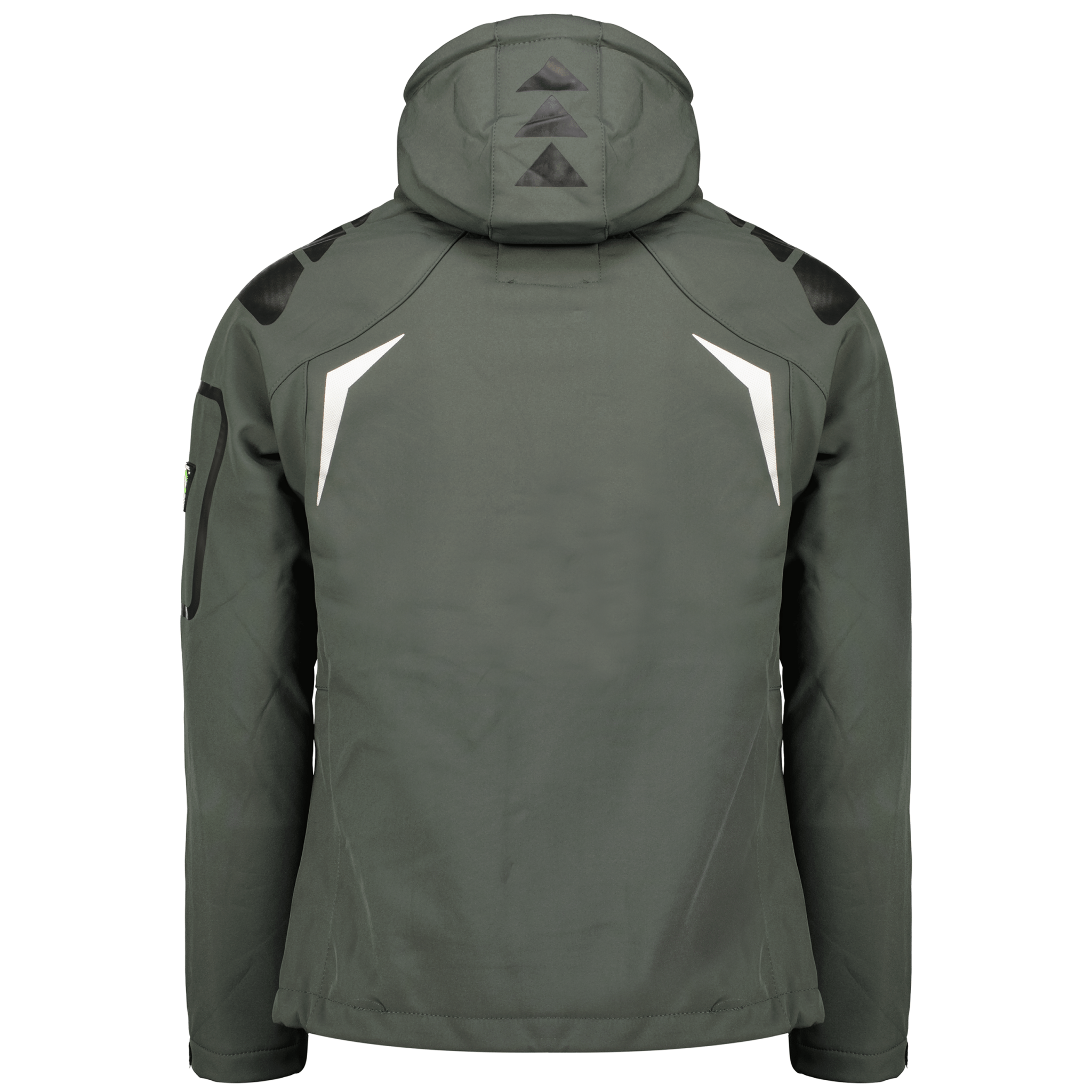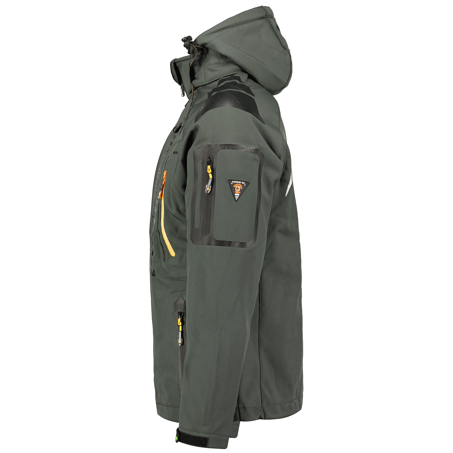 Discover Geographical Norway 's "Techno" softshell jacket for men. This iconic jacket features a detachable hood with tightening ties, injected zipped pockets, PVC tightening ties on the cuffs, a badge on the sleeve and various prints.