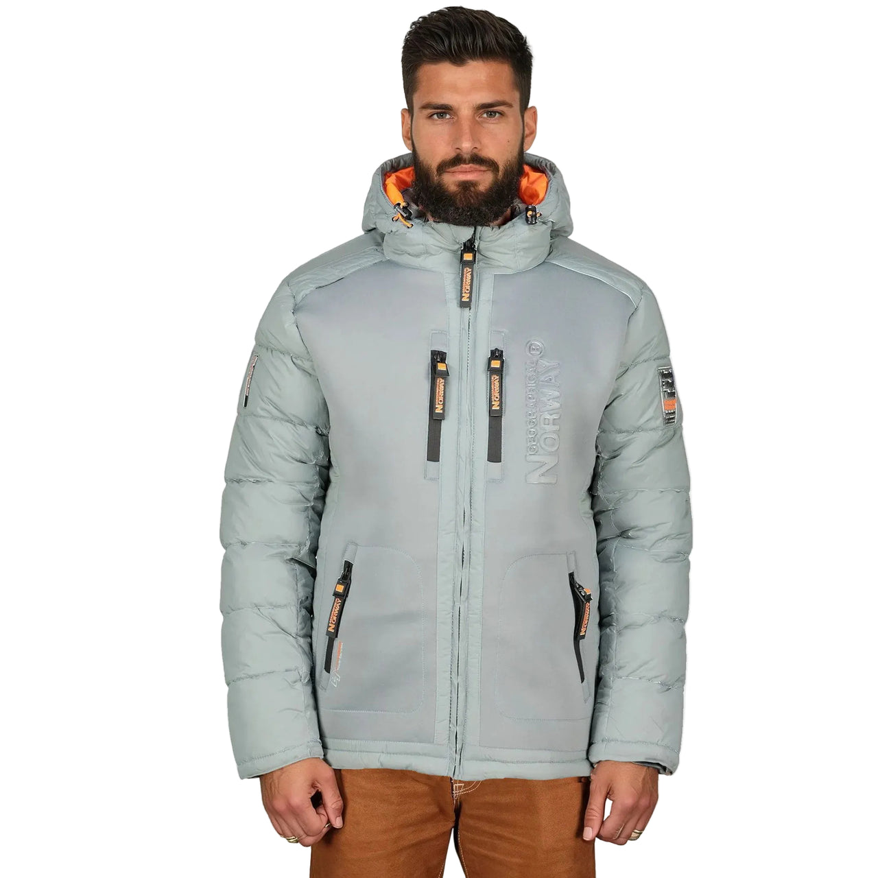 Discover Geographical Norway 's Beachwood Puffer jacket for men, an elegant and functional piece. Its contrasting bimaterial design, quilting and hood make it a versatile jacket to face winter in style...