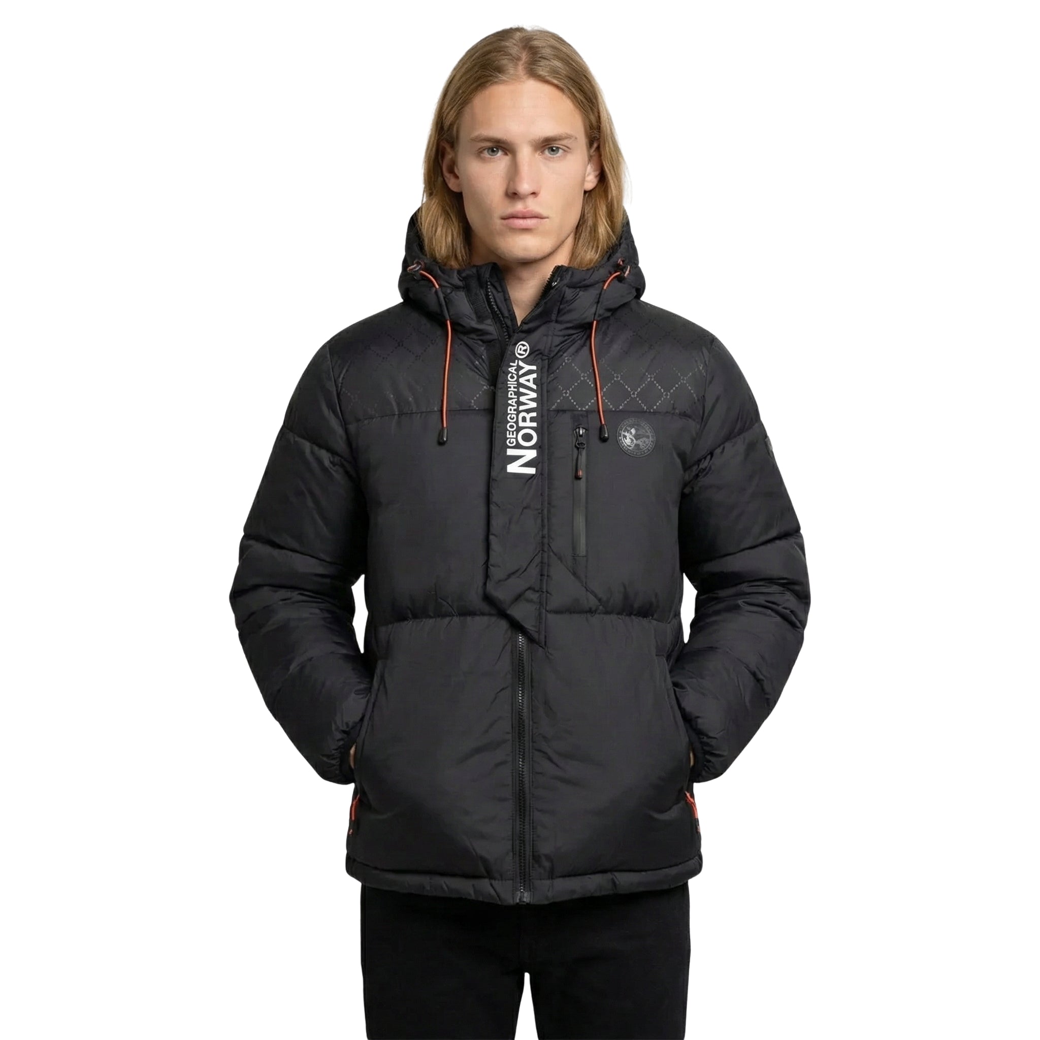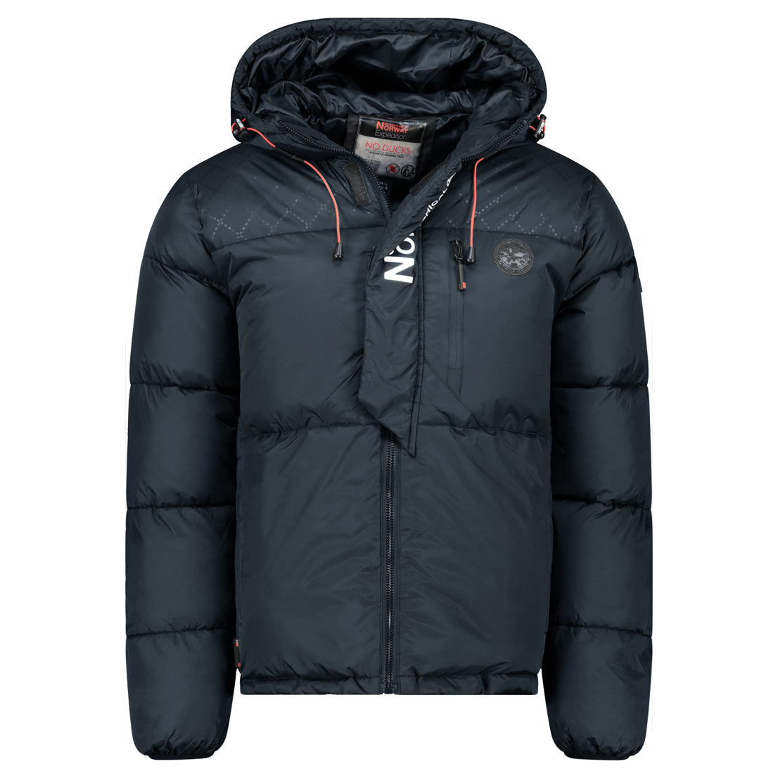 Designed to take on the cold, Geographical Norway 's "Betincelle" jacket for men combines performance and style. Its fixed hood with drawcord provides effective protection from the elements, while the zip fastening reinforced by a Velcro fastening at the collar offers extra insulation. Practical, functional side pockets and a chest pocket keep your essentials close at hand. A sturdy, elegant jacket, ideal for winter.