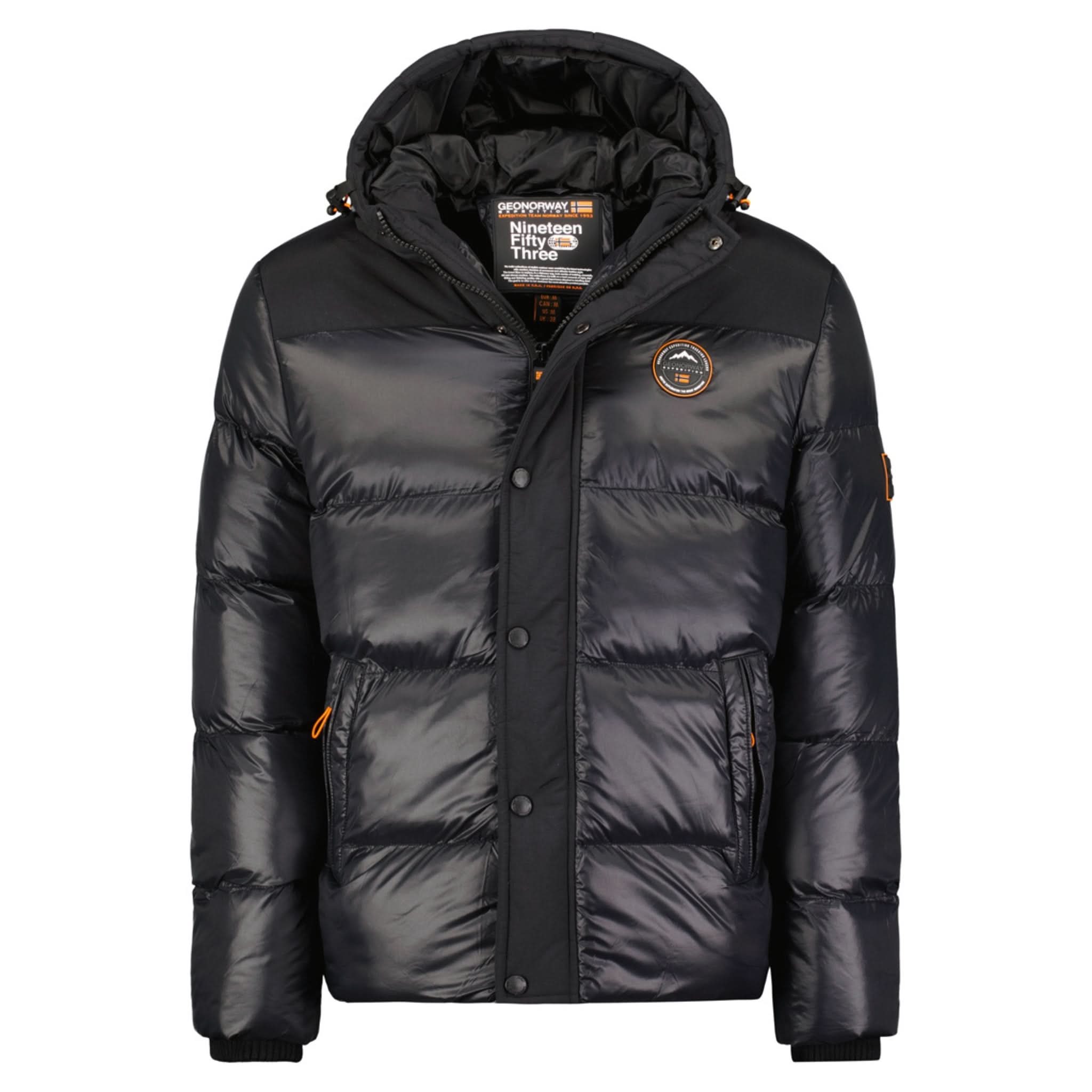Discover Geographical Norway 's "BINAEL" short parka for men. This hooded parka features a badge on the chest, practical side pockets and a flag on the sleeve for a unique touch of style.