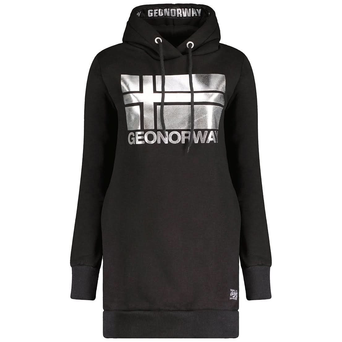 Discover Geographical Norway's women's "FABIENNE" sweatshirt dress, a comfortable and trendy piece. Featuring a hood, drawstrings and chest print, this dress offers casual, modern style.