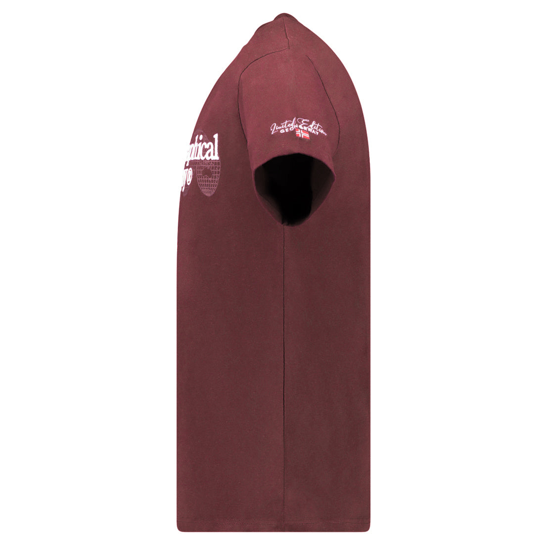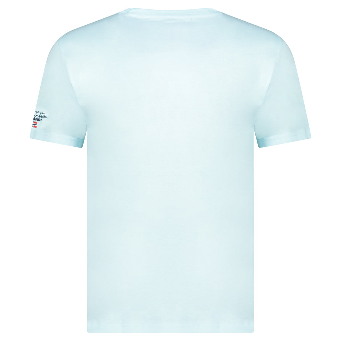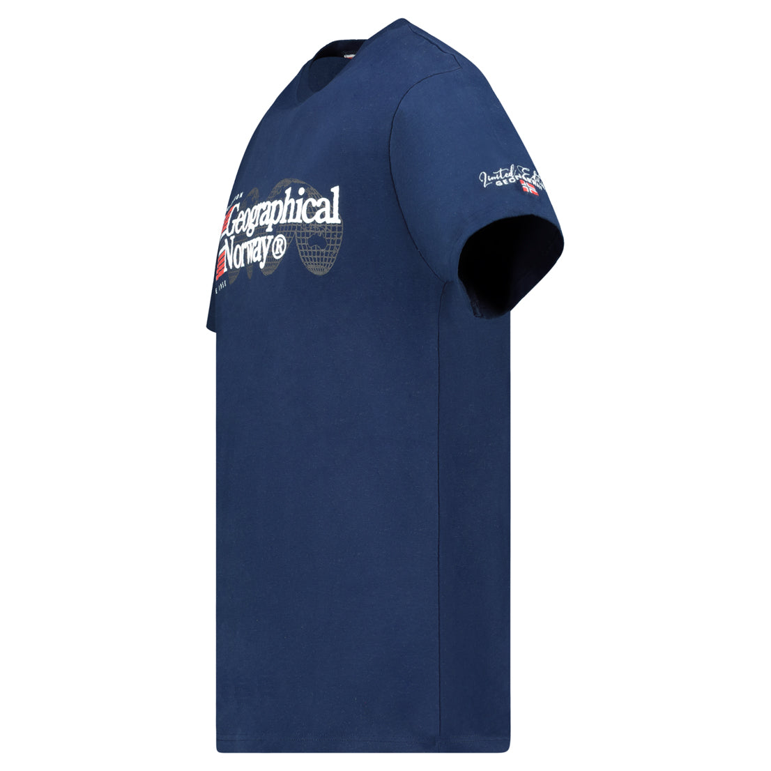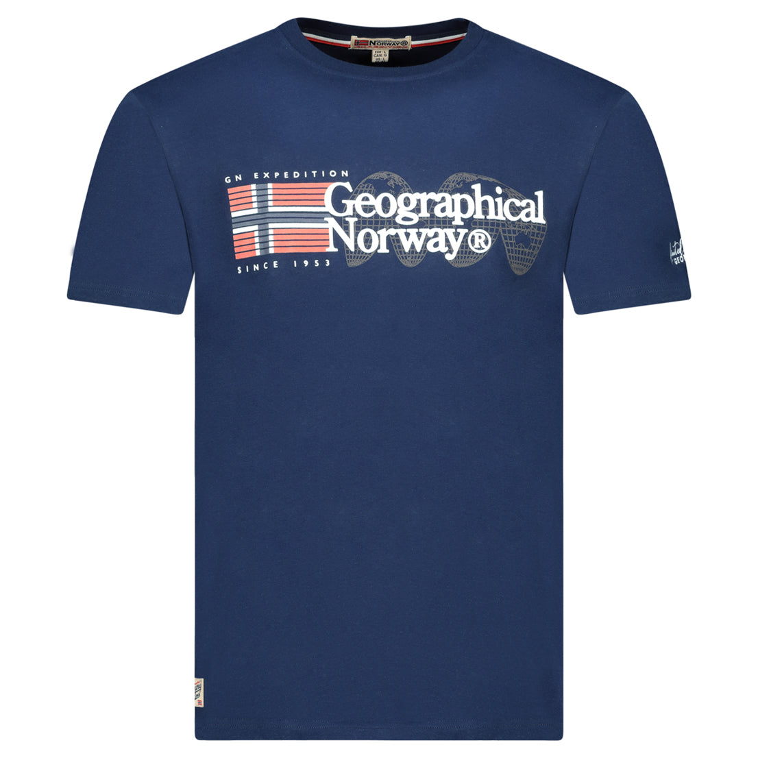 The Geographical Norway "Jaramont Men" T-shirt Geographical Norway a short-sleeved style with a modern, bold design. Featuring a classic round neck, it offers optimal comfort for everyday wear thanks to its cotton fabric. Distinctive prints and badges on the front and sleeve reinforce its sporty, dynamic identity. Ideal for a trendy casual look, it can be worn easily in any season.