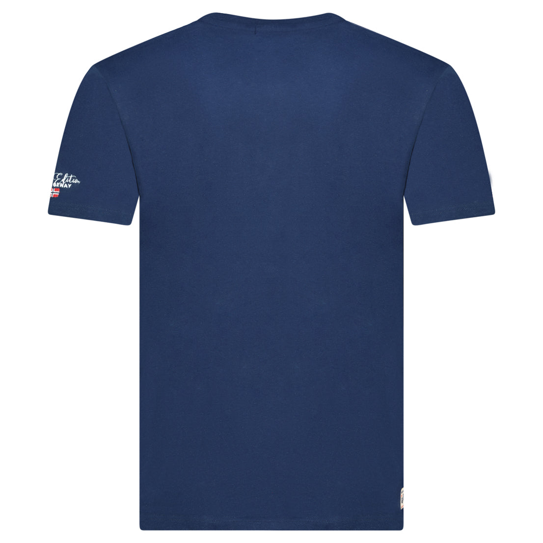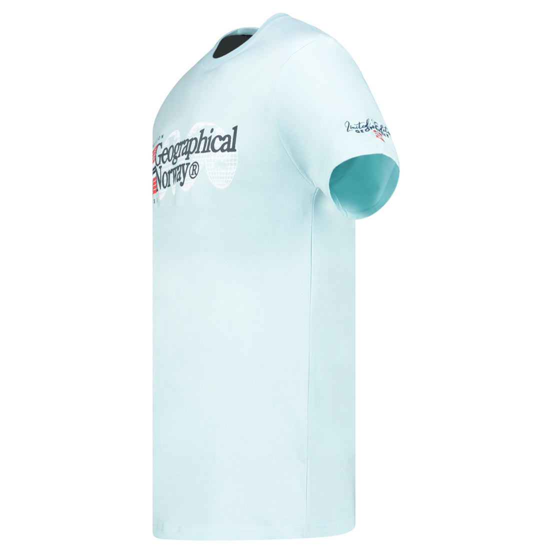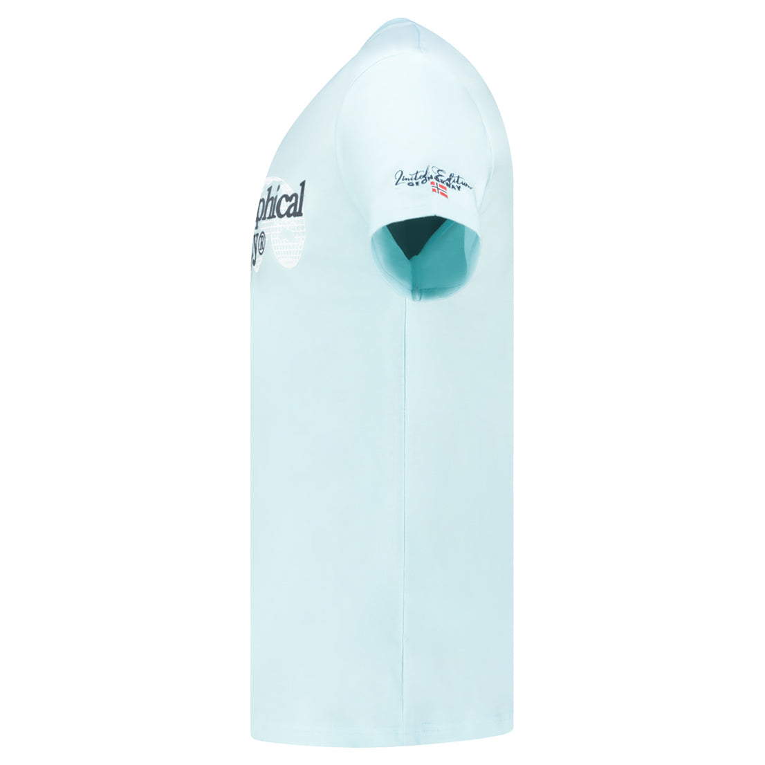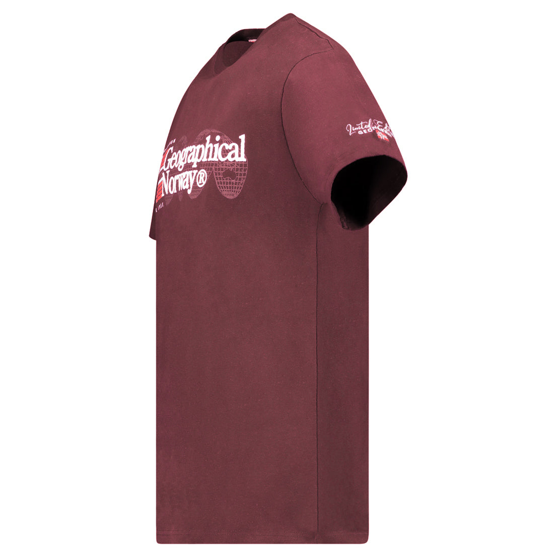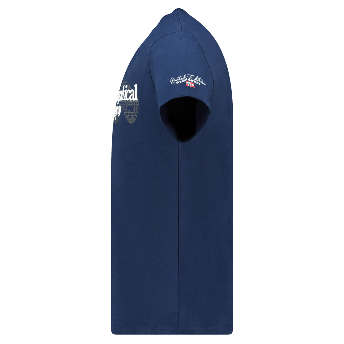The Geographical Norway "Jaramont Men" T-shirt Geographical Norway a short-sleeved style with a modern, bold design. Featuring a classic round neck, it offers optimal comfort for everyday wear thanks to its cotton fabric. Distinctive prints and badges on the front and sleeve reinforce its sporty, dynamic identity. Ideal for a trendy casual look, it can be worn easily in any season.