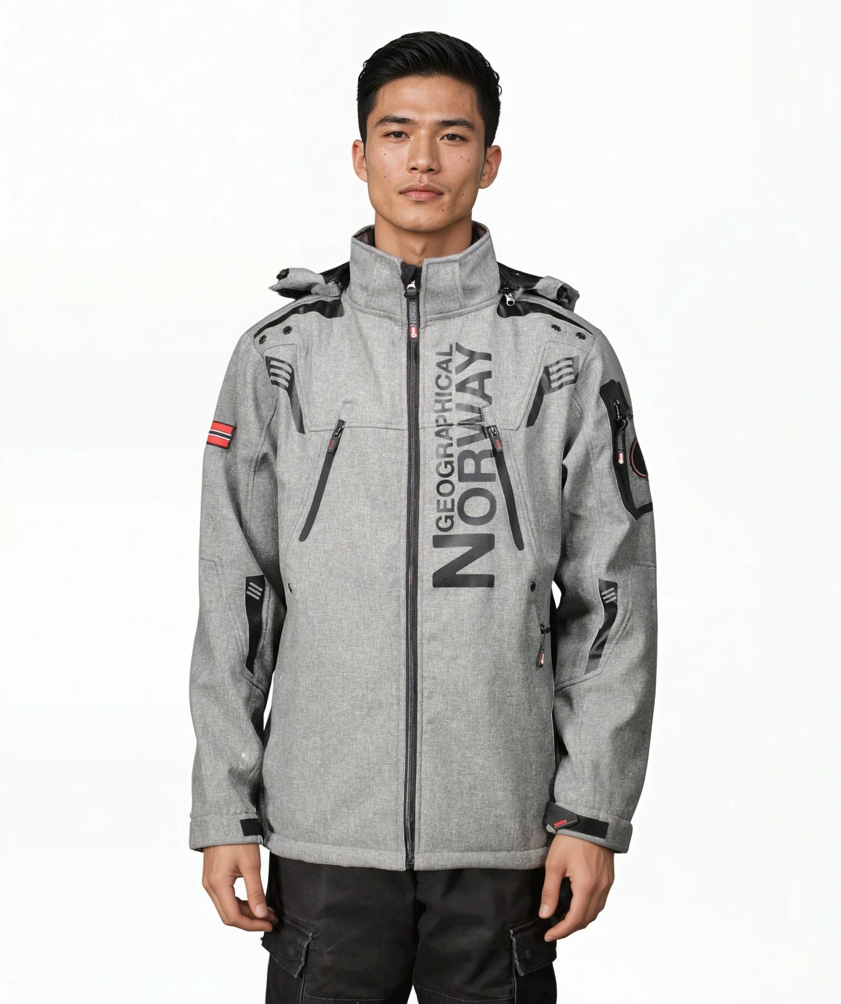 Discover the "Talentueux" softshell for men from Geographical Norway. Featuring a removable hood and multiple zipped pockets, it combines modern style and functionality.