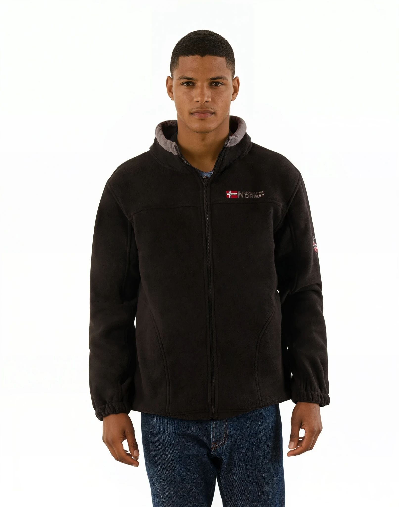Discover the "Tamazonie" fleece from Geographical Norway for men. This mid-zip fleece features 2 zipped side pockets, embroidery on the chest and sleeve, a hood integrated into the collar by a zipper, a mesh interior, a mesh back and elasticated cuffs.